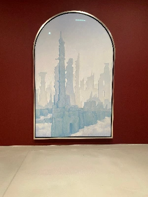 <폭포> 외에도 전시 곳곳에 파스텔 벽화를 그려 넣어, 환영과도 같은 작품 세계로 이끈다. 이번 전시에서 파티의 벽화는 5점으로, 6개월에 걸쳐 완성 됐다.