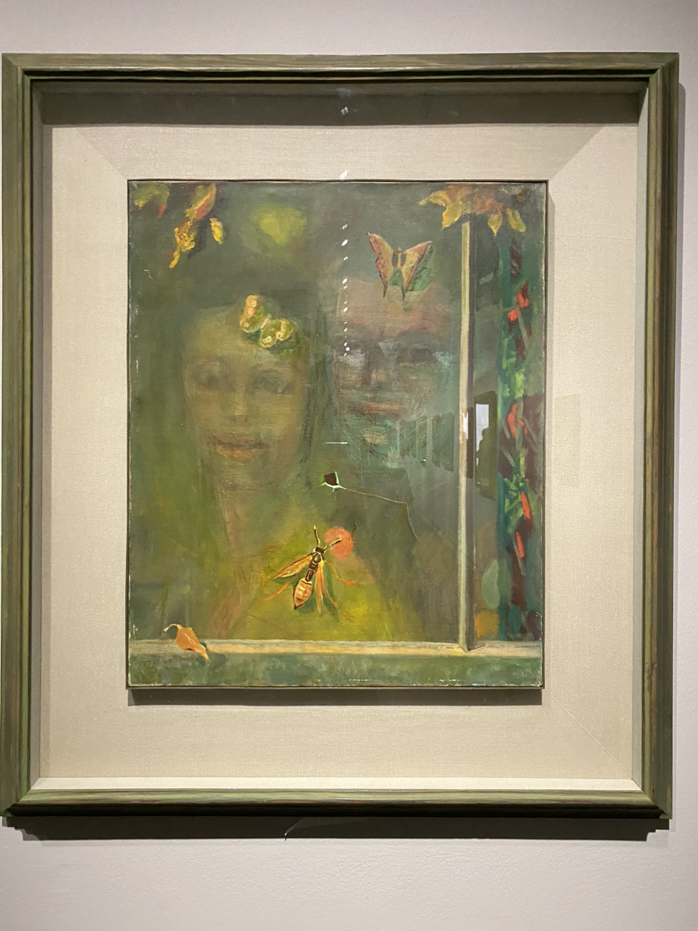 삶과 일상을 뒤로하고, 김욱규는 자신의 작품으로 도피한 듯하다. 하지만 그의 작품에서 느껴지는 작가의 심리상태를 통해 가족들과 생이별하고, 사회적으로 인정받지 못하고 내쳐진 상황에서 예술이 곧 그의 생존이지 않았을까, 짐작해 본다. 깨진 유리에 남성과 여성이 비친다. 작가의 환상 같기도 하고 유령 같기도 하다. 인물들에 반해 세밀하게 묘사된 곤충들이 꺼림칙하고 섬뜩하다. 어쩌면 유리에 비친 환영을 그리듯, 그의 삶도 현실에서 부재하는 어떤 것을 잡기 위한 처절한 몸부림이었을지 모른다.