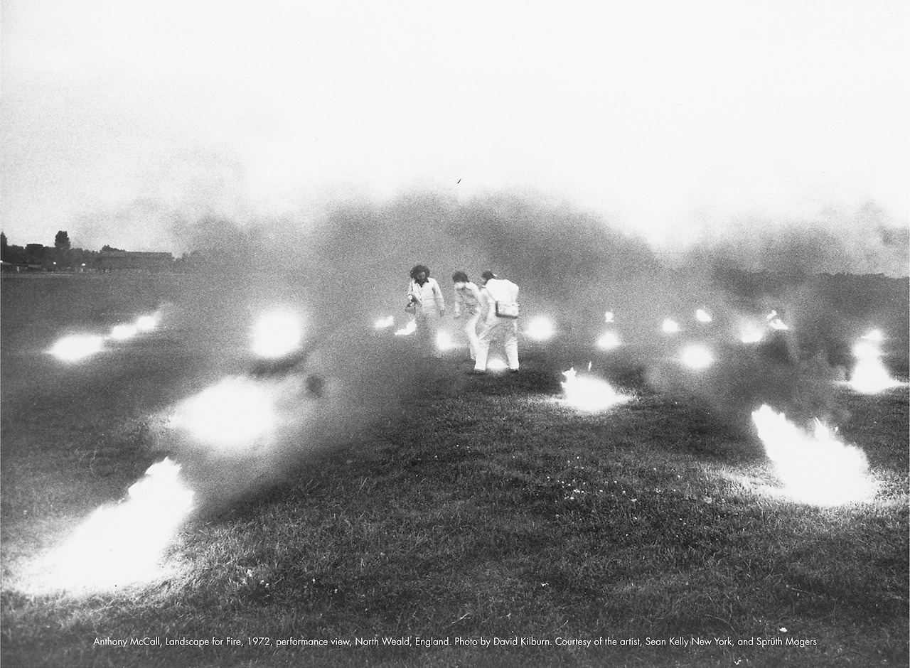 6분짜리 영상인 <불의 풍경>을 보자. 아직 해가 뜨지 않은 새벽녘, 흰 옷을 입은 남자들이 일정한 간격으로 땅에 불을 붙인다. 마치 땅 위에 불로 드로잉을 하듯, 그들은 작가의 의도대로 움직이고, 묵묵히 자신의 역할을 수행한다. 점차 어둠이 깔려오고 불은 어둠이라는 새로운 시공간에서, 하나의 의식(ritual)으로 마무리된다. 불꽃의 점화와 소멸의 과정을 통해 변화하는 자연적 요소에 인간이 개입하여 상호작용하는 경험, 이는 맥콜의 예술 세계에 큰 축을 이룬다.
