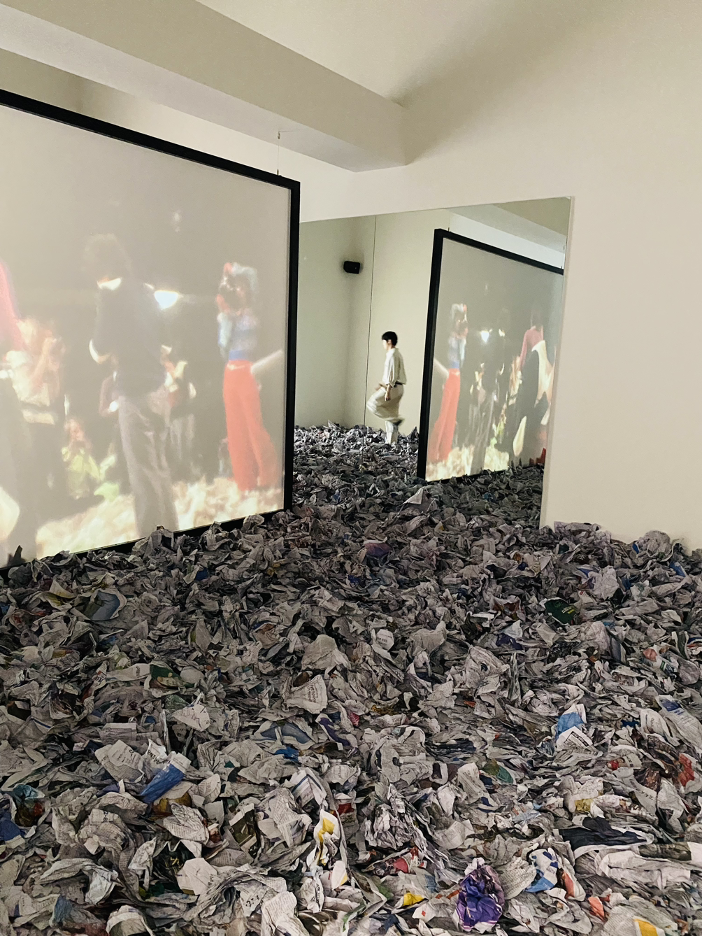 그런 관람객의 당황스러움을 포착해서인지, 전시는 '굳이' 신문지를 밟고 거울을 지나야 다음 작품으로 이동할 수 있게 구성되어 있었다. 맥콜의 작품은 관람객이 작품을 '보는 것' 만으로 끝나지 않는다. 관람객은 작품 안으로 직접적으로 초대된다.