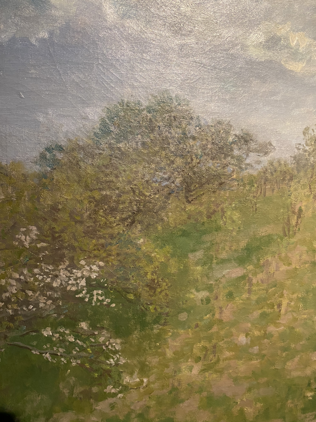 아름다움이 사진에는 담기지 않는 모네의 <봄>이다. 대중적으로 많이 소비된 모네의 작품 가운데서도 흔히 볼 수 없었던 작품이었기 때문인지 눈부신 꽃이 만발한 들판 앞에서 많은 관람객들이 넋을 잃고 바라보았다. 보통 <봄>의 시리즈 가운데 모네의 아내 끌로드가 양산을 쓴 채 눈부신 빛을 받는 그림을 많이 볼 수 있었을 것이다. 인물 없이 그 자체로도 자연은 눈부시고 찬란하다.