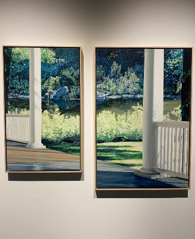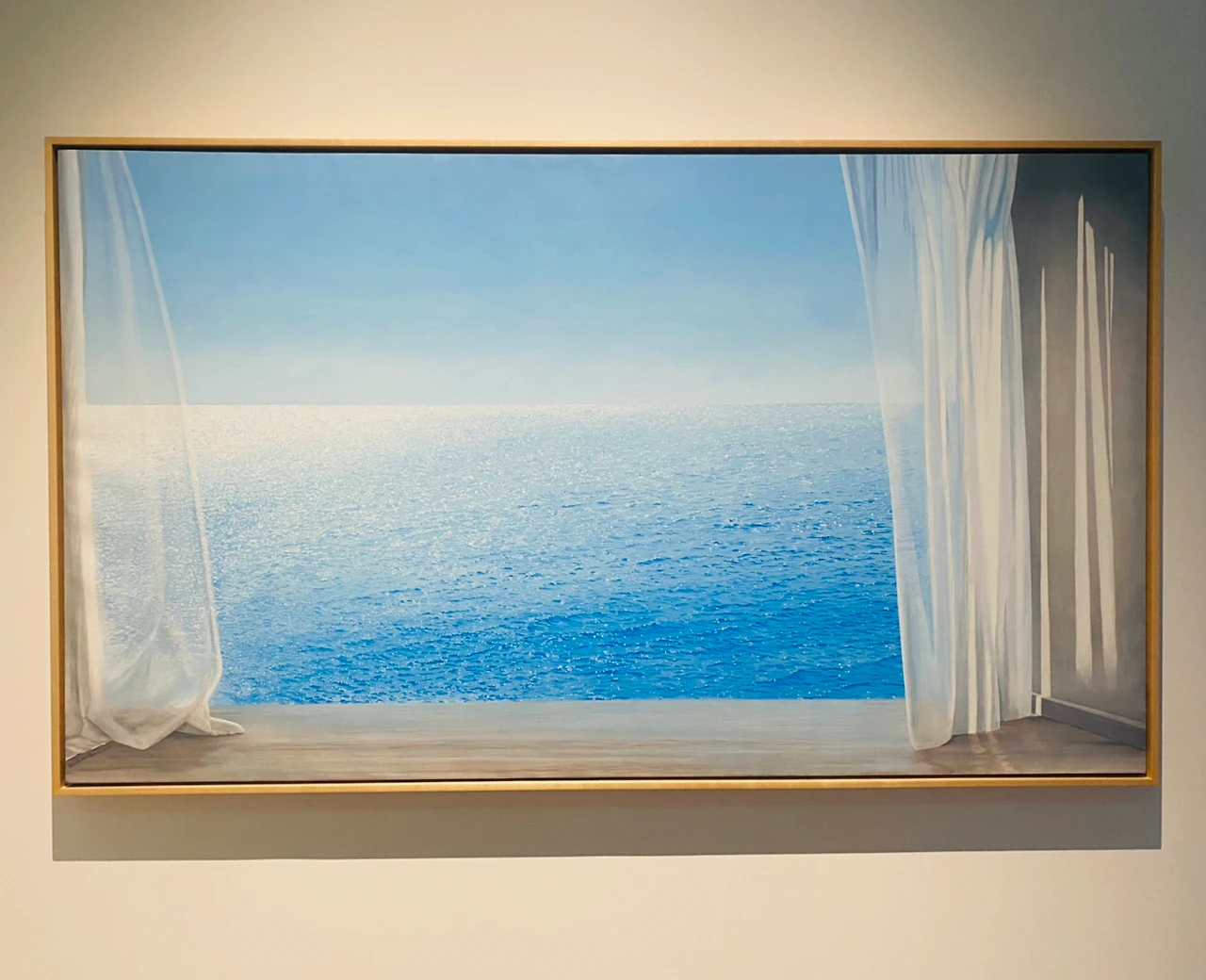 최근 작품들은 여기서 더 나아가 공간 안에 비현실적이지만 누구나 한 번쯤은 꿈꿔 봤을 공간으로 우리를 초대한다. 이어 그는 안도 밖도 아닌 "경계적 공간"(liminal space), 즉 그가 집의 안과 그 너머로 이동하는 현실과 비현실의 공간을 통해, 우리 마음속 '장소'를 재현한다. 맑고 푸른 바다가 보이는, 빛과 바다, 바람이 들어오는 실내 공간, 안과 밖의 경계는 살랑이는 커튼뿐이다. 원숙한 리얼리즘 화가답게 이런 비현실적인 상황도 이질감 없이 재현해 냈다. 마치 바다의 신선함, 물결이 출렁이는 소리까지 그대로 전해져 오는 듯하다.