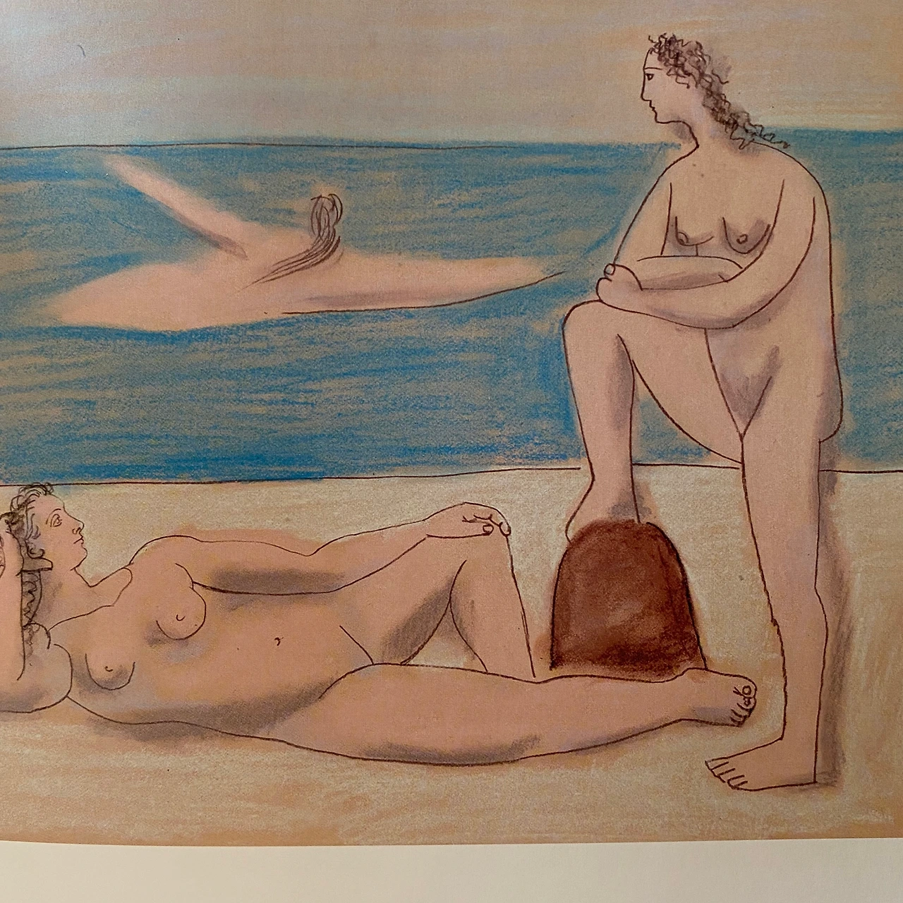 지중해를 수영하는 사람들과 남프랑스 햇볕 아래 발가벗고 자유를 누리고 있는 사람들, 그리고 자기가 사랑하는 아내, 연인들을 그린 피카소의 그림들은, 그림이 그려졌던 바로 그 자리에서 빛을 발한다. 그중에서도 1920년대에 그린 '해변에서' 시리즈는 이미 남프랑스 지중해에 넋을 잃었을 여행자들에게 피카소만의 '푸른빛'을 선물하는 작품이다.