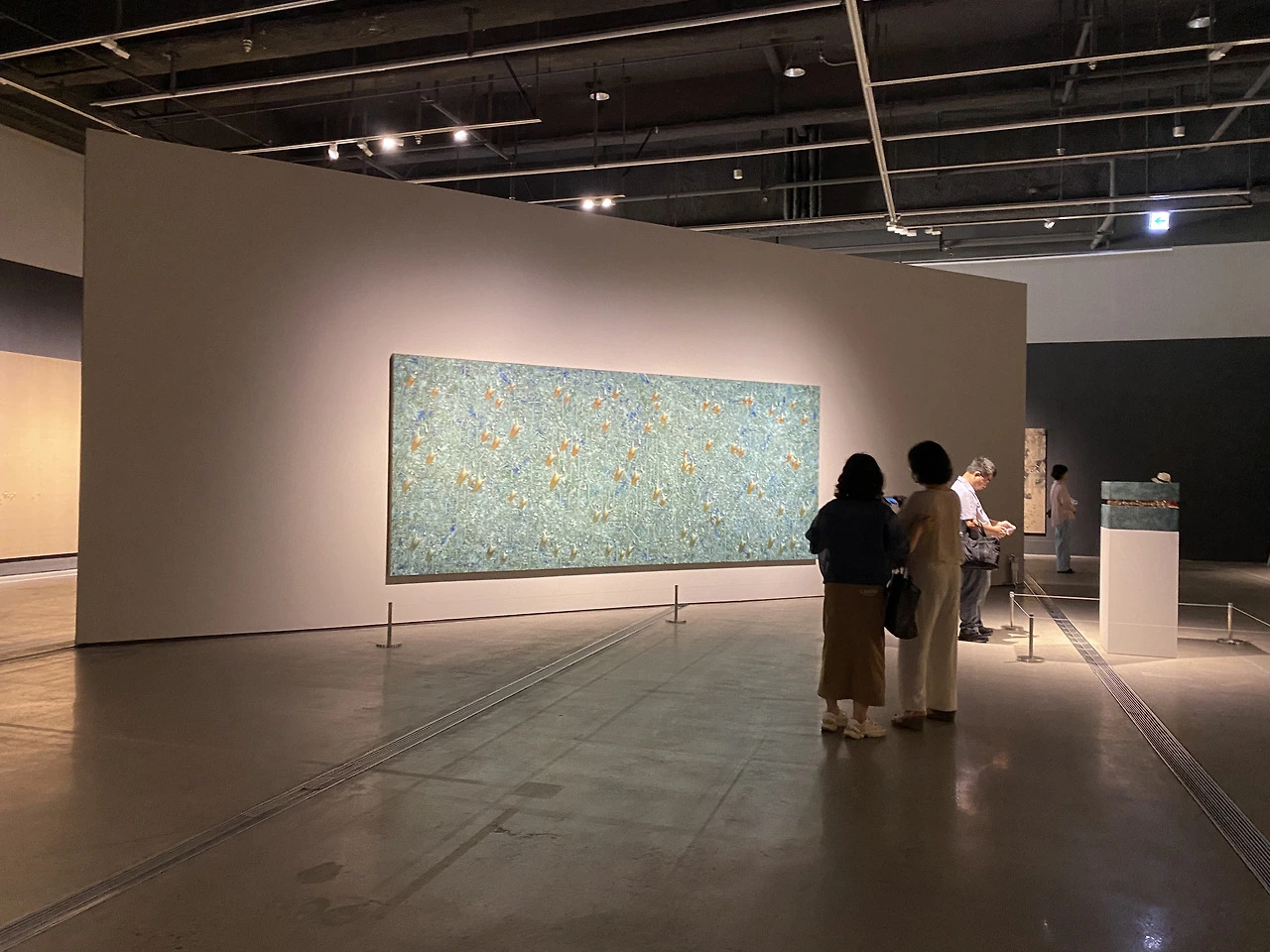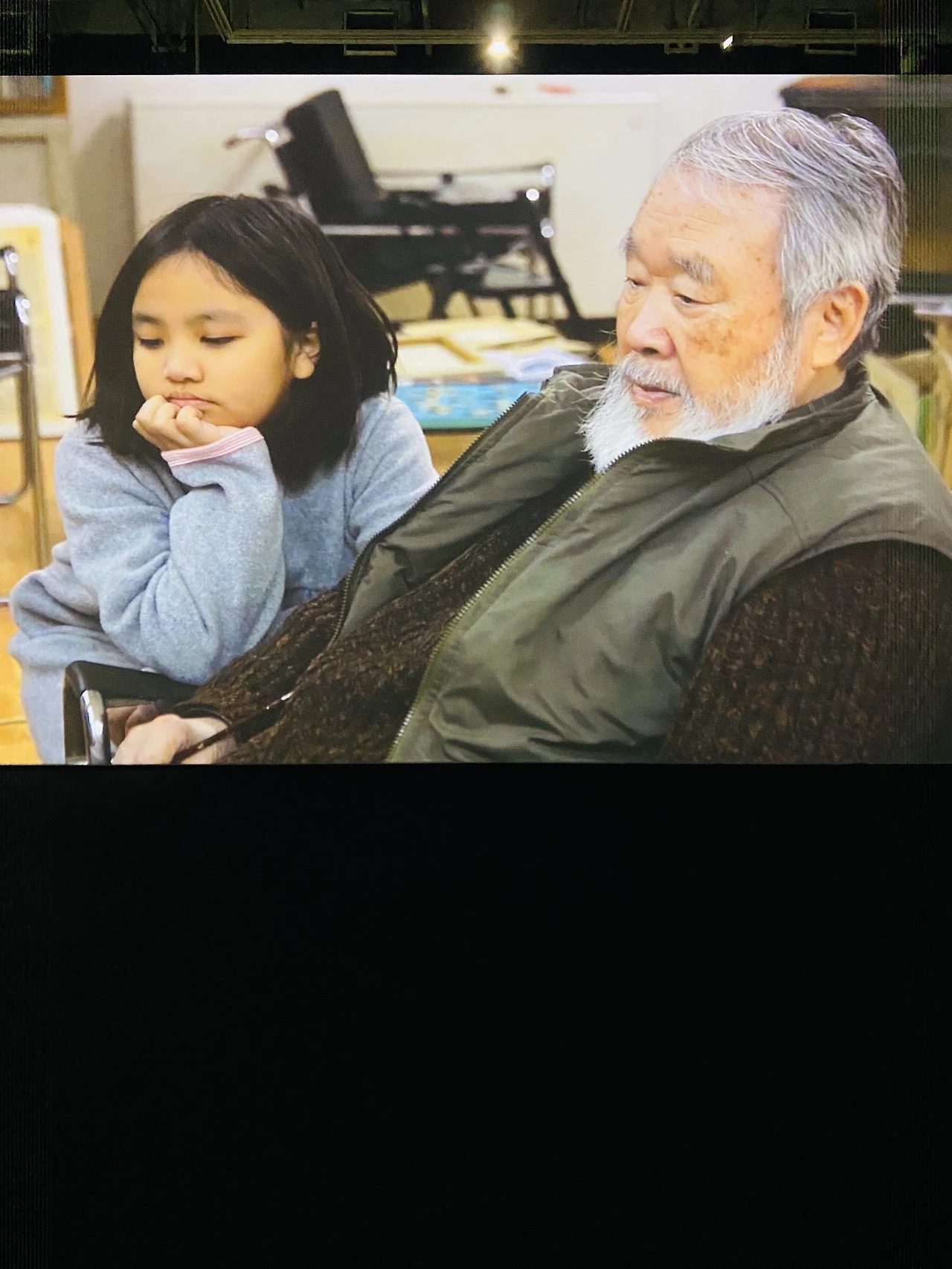 전시장에 설치된 다큐멘터리는 김창열이 손녀와 함께 작업하고 있는 장면이 나온다. 손녀는 할아버지를 돌아주기도 하고, 멍하니 작품을 함께 바라보기도 한다. 이 장면은 작가가 할아버지와 보냈을 오붓하고 아련한 기억들을 소환하는 듯 했다. 묵묵히 작품에 임하는 작가의 모습도 나온다.