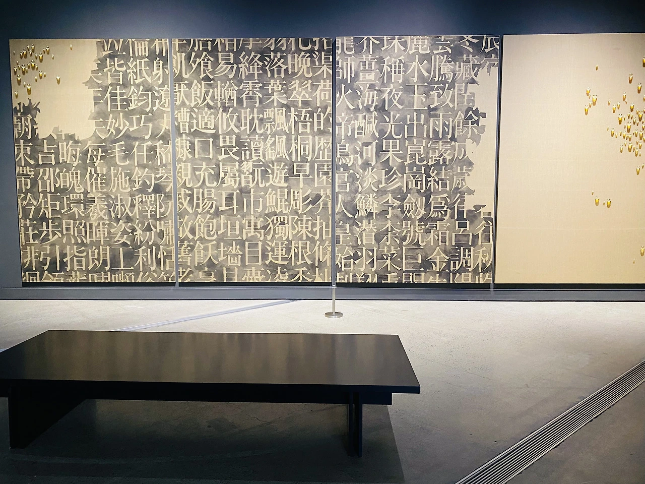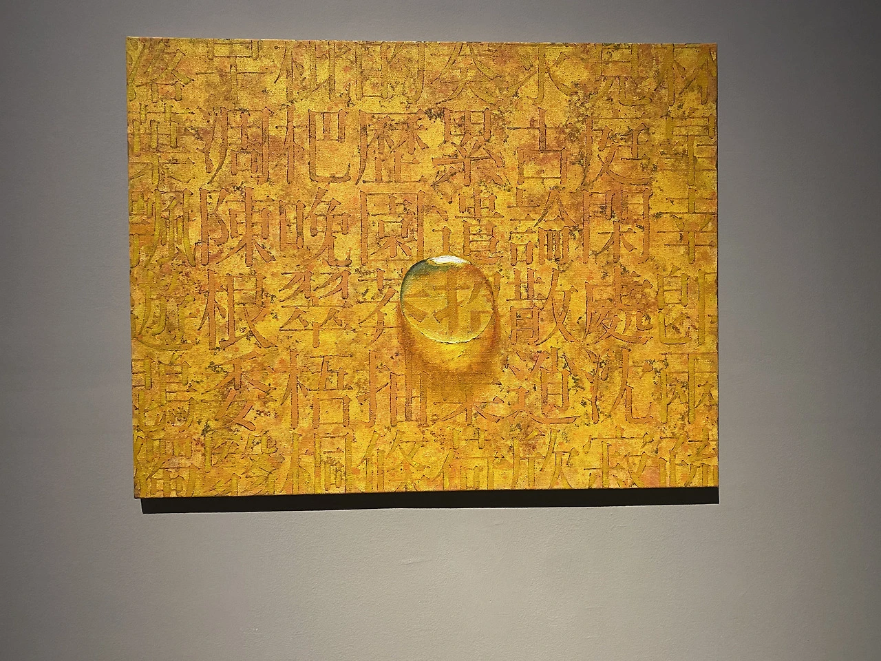 한자 텍스트 위에 떨어지는 물방울을 그린 것이다. 이는 그가 한자의 입체감과 흡입력에 주목했기 때문이기도 하고 유년시절 할아버지에게 붓글씨를 배운 작가에게 한자는 향수 어린 기억이 반영된 것이기도 하다.