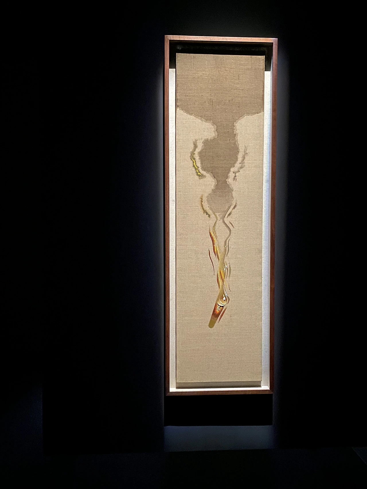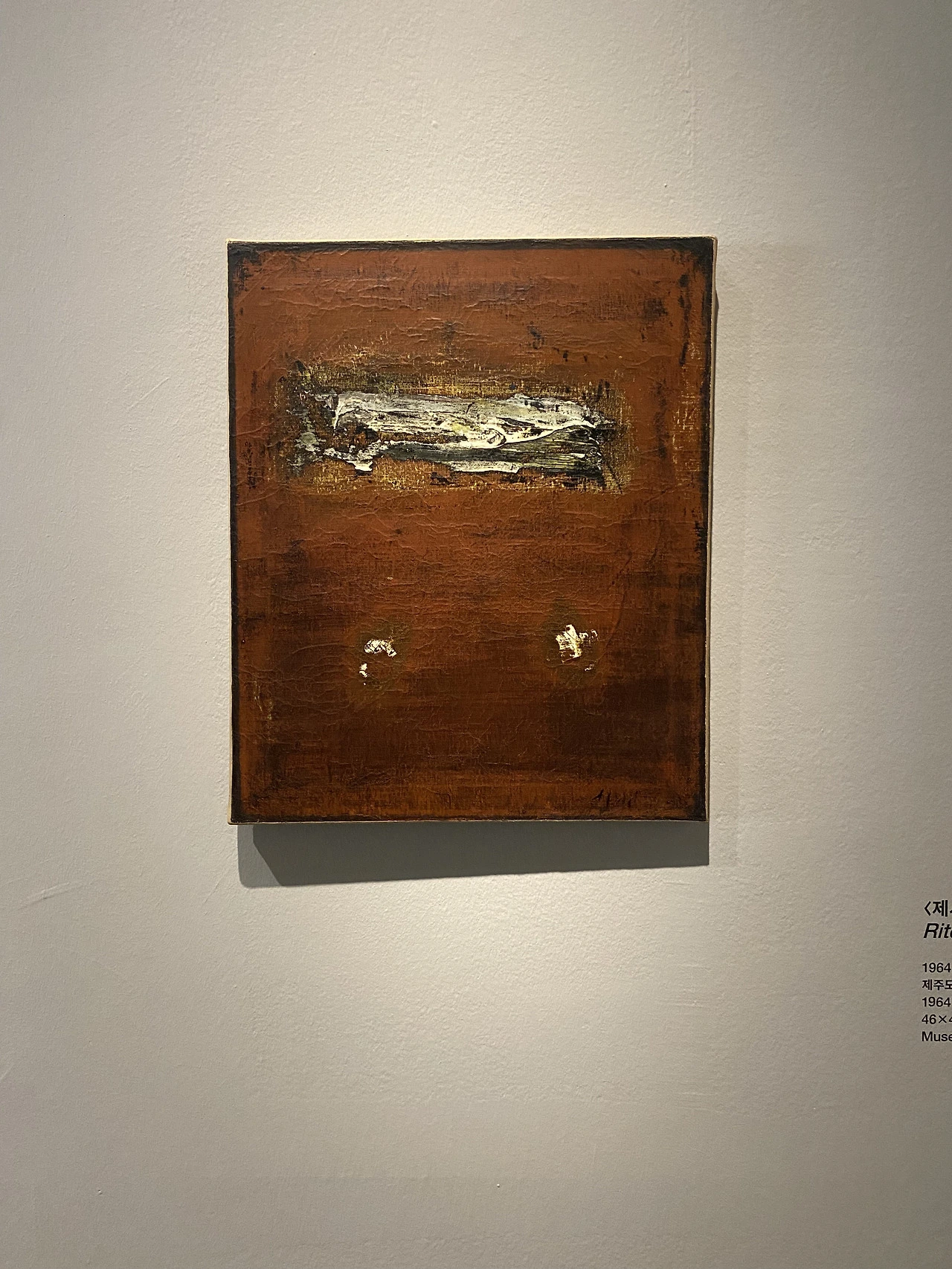 1929년 평안남도 맨산에서 태어난 김창열은 열다섯에 홀로 월남했다. 6.25를 거치며 여동생, 그리고 동급생 중 반 이상의 죽음을 겪었다. 1960년대 <제사> 연작에서는 죽음의 그림자가 깊게 드리워져 있다. 표면은 거칠고 총알이 몸을 뚫고 지나 간 듯 구멍이 숭숭 뚫려 있다.