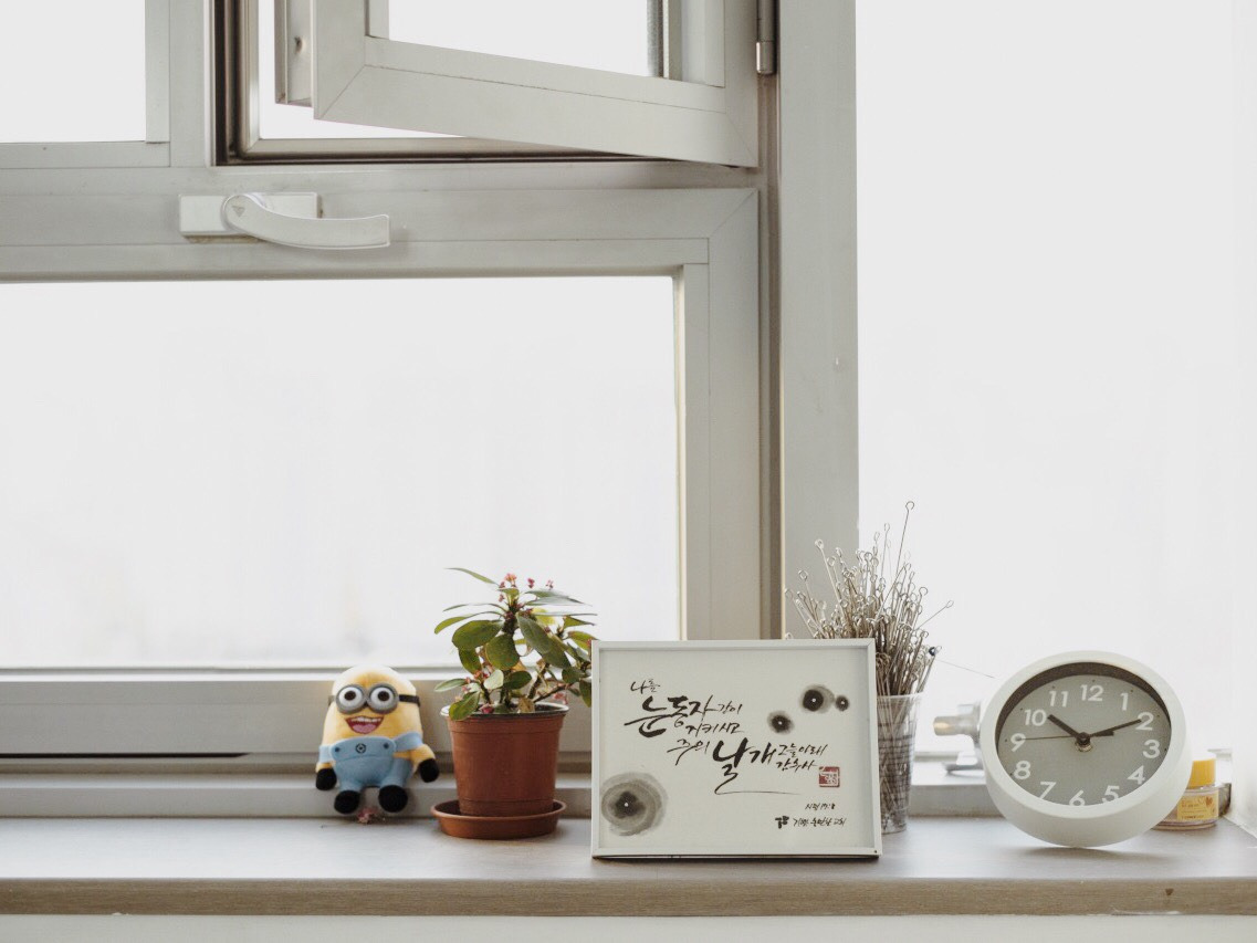 1층의 카페에서 커피를 사 들고 올라간 오피스텔 역시 편안했다. 한쪽에는 그리다 만 캔버스가 이젤에 얹혀 있고, 창가에는 오크나무 침대와 아쿠아 빛 작업대가, 그리고 곳곳에 화분과 꽃이 놓인, 꽃다운 나이의 타투이스트 작업실을 방문했다.