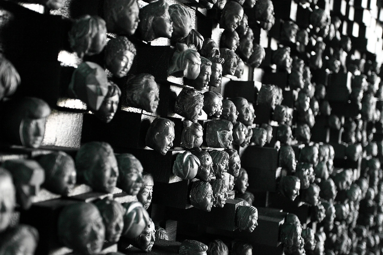 수천 개의 얼굴들이 옹기종기 모이고 쌓여 파도를 이루었다. 몇 해 전 우리 곁을 떠난 수백 명의 아이들이 떠오르기도, 70년 전 길거리에서 국기를 흔들며 자유를 외쳤을 사람들이 연상되기도, 한편으로는 어깨를 부대끼며 좁은 도시의 길을 함께 걷고 있는 지금의 우리가 보이기도 했다. 흙빛의 인구를 자세히 들여다보니 안중근 의사 같은 민족의 영웅도 있지만 배트맨 같은 가상의 히어로가 중간중간 눈을 마주치며 짐짓 긴장되었던 마음을 놓아준다. 강용면 조각가의 작품 ‘현기증’은 고은 시인의 ‘만인보’에서 태어났다. 시인이 하나하나 손으로 써 내려갔다면 조각가는 하나하나 손으로 빚었다. 모두가 아는 사람, 또는 아무도 모르는 사람들이 모여 공동체를 이루고 역사를 쓰고 있었다. 그 가운데 서서 이를 마주하고 있자면 조금 어지러워진다.