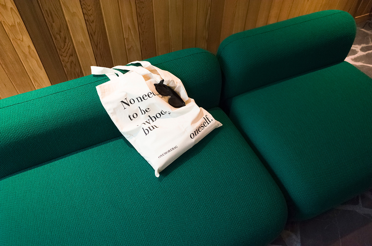 메리트라면 유연한 소재이기 때문에 무엇이든 할 수 있다는 점이고, 제약이라면 역시 유연하기 때문에 힘이 없다는 점이에요. 납작한 에코백이나 커튼 같은 제품이야 쉽게 만들 수 있지만 조금만 형태가 달라져도 보강제가 필히 들어가야 하죠. 소파처럼 어떤 틀에 패브릭을 씌울 수는 있지만 그런 방법만으로는 할 수 없는 게 너무 많아요. 더 이상 패브릭으로 만들 게 없다는 생각마저 들기도 하지만, 혹시 놓쳤을지도 모를 쓰임새들을 찾아서 계속 개발 중이에요.