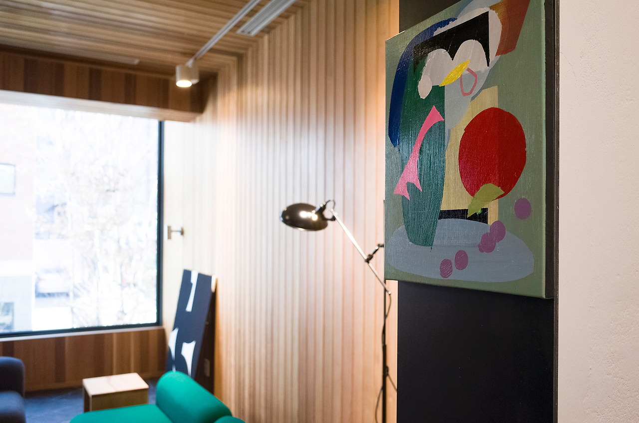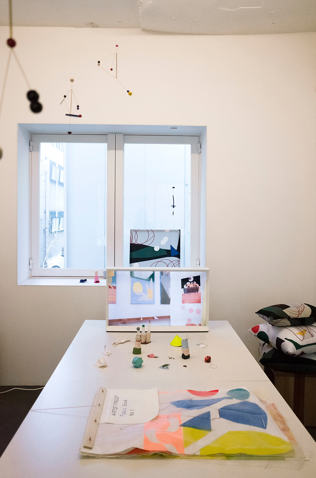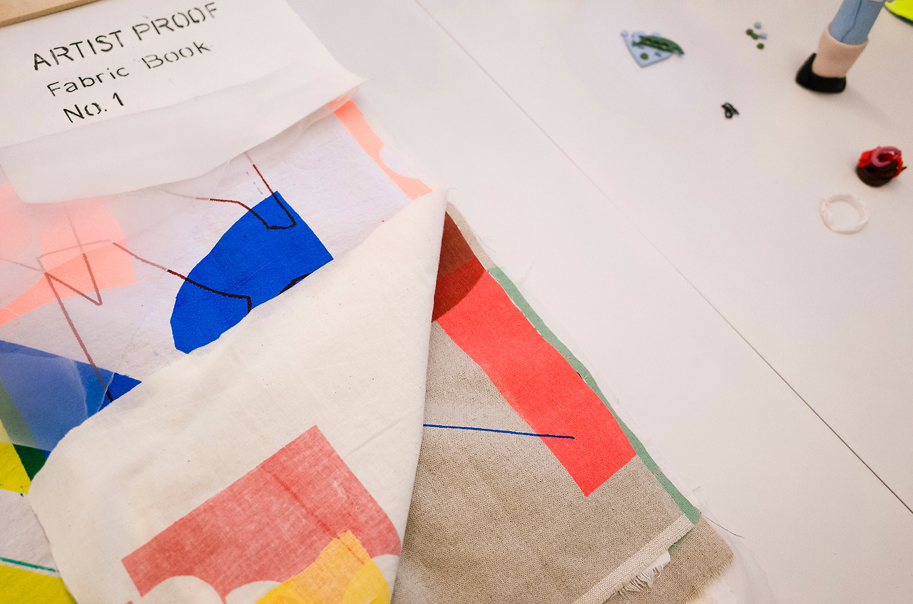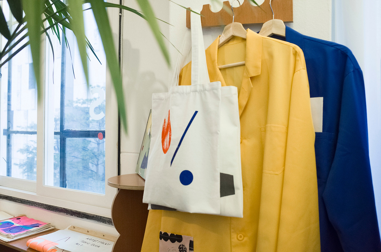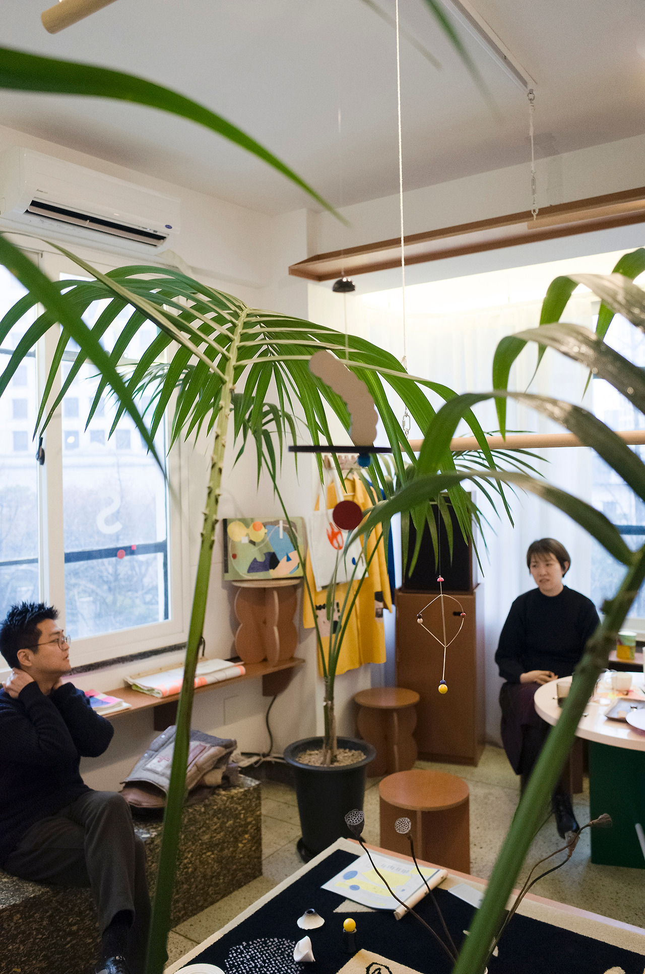 비가 오는 날의 쇼룸은 유독 더 하얀빛이었다. 캔버스 같은 공간을 식물과 햇빛의 흔적이 알록달록하게 메웠다. 살색 빛의 둥근 테이블에 옹기종기 앉아 따뜻한 느낌의 하얀 주전자에 뜨거운 차를 우려 얇고 매트한 네이비 머그잔에 따라 마셨다. 머그잔은 노랑, 초록 도형이 겹쳐진 작은 원단 코스터 위에 내려놓았다. 입구의 원단 행렬도, 여기저기 걸린 그림도, 인사하며 건네받은 명함 뒷면도, 무엇하나 똑같은 게 없었다. 안전한 무채색에 길들여진 감각은 밀려오는 색채와 도형의 자유로움에 위기를 느꼈다. 너무 많은 걸 잊고 지내왔다는 위기감을.
