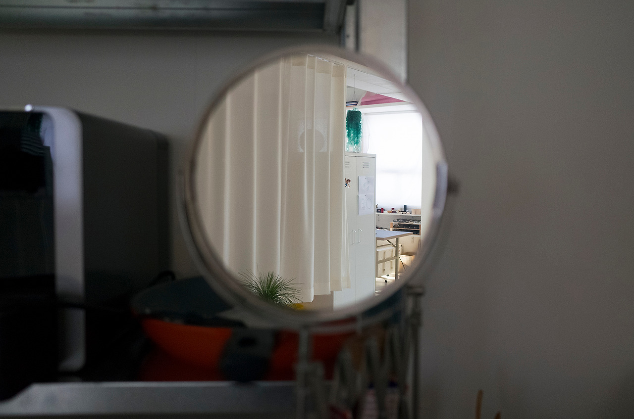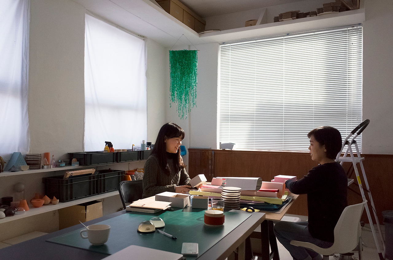 원조 족발집이 골목골목에 자리를 잡아온 동네에 도착했다. 번지수만으로 간판 없는 스튜디오를 찾을 수 있을까 잠깐 걱정했지만 건물 입구에서부터 온통 하얗게 칠해놓은 계단과 벽을 보고 제대로 온 것을 알았다. 두 개의 육면체를 붙여놓은 듯한 공간은 넓고, 하얗고, 밝았으며 이런저런 물건과 재료들이 어수선하고 정갈하게 어떤 과정 속에서 멈추어 있었다. 대학교 실기실에 흔히 뒹굴던 커팅 매트와 테이프, 아이소핑크 등이 놓인 테이블에 앉아 전기난로에서 나오는 열기와 창문에서 내리쬐는 햇볕을 함께 맞았다.
