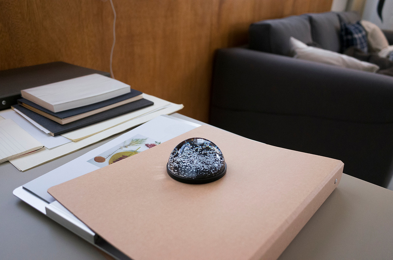 어느새 효자상품이 되었네요. 다른 작업에 불을 붙이다가도 <무거운 거울>에 우선순위를 둬야 하는 상황이에요. 바닥과 돔 사출 파트는 공장에서 만들지만 그 뒤의 일이 훨씬 많고 어려워요. 저희가 다 직접 조립하기도 하지만, 그것보다 안에 들어가는 콘텐츠를 계속 개발해내야 하는데 그때마다 테스트를 통과해야 하거든요. 물속에 들어가기 때문에 예상한 것과 전혀 다를 때가 많아요. 반짝이는 건 다 예쁠 거 같지만 확률은 반 밖에 안 돼요. 물론 기본적으로 기포가 생겨도 안 되고, 내용물이 뭉쳐도 안 되고, 물이 새도 안 되고.