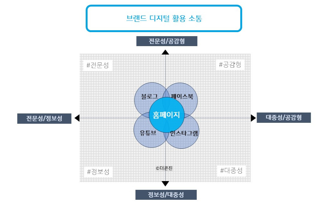 간혹 SNS채널은 화려한데 막상 홈페이지에 들어가 보면 뭔가 별거 없는 듯한 모습, 고객이 원하는 정보 등을 제공하지 않는 단발성 위주의 콘텐츠에만 집중되는 현상도 보이곤 합니다. 하지만 가장 중요한 건 중심 채널 기둥이 단단해야 한다는 것입니다.