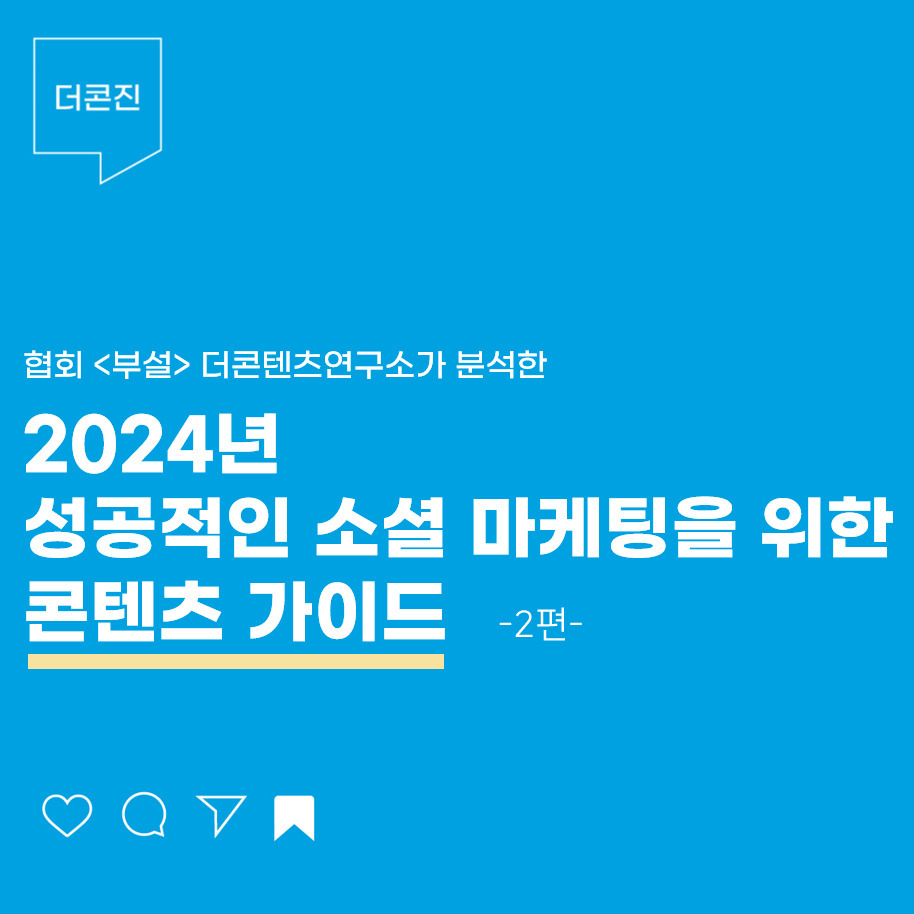 콘텐츠가 넘쳐나는 지금. 2023년도 소비자에게 좋은 평을 받은 실제 콘텐츠 사례들을 살펴보며, 인사이트를 얻어가셨으면 좋겠습니다. 이를 기반으로 탄탄한 SNS채널을 운영해 디지털 소통에도 강한 브랜드와 공공기관으로 거듭나는 것이 중요하겠죠. 다양한 실무 사례를 통해 인사이트를 얻고 싶다면, 더콘텐츠연구소와 함께 발간한 <콘텐츠 인사이트 2024>를 참고해 주셔도 됩니다. 우수사례 인사이트를 보다보면, 성공한 콘텐츠 마케팅의 공통점을 찾으실 수 있는 눈이 길러지실 거예요. 이를 우리 브랜드와 공공기관 상황에 맞게 취사 선택해 적용해 보시면 됩니다.