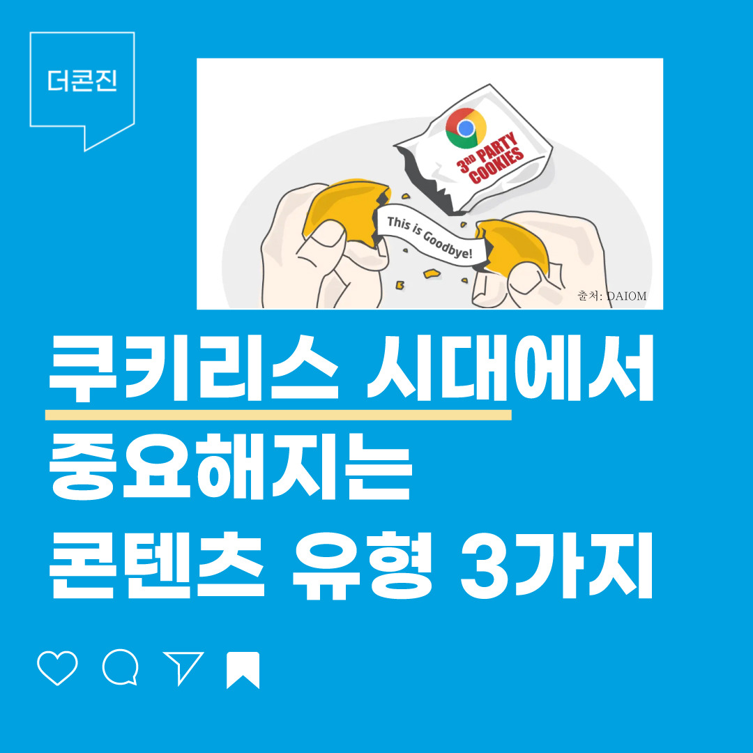 "쿠키리스 시대가 온다" 혹시 '쿠키리스'라는 말 들어보셨나요? 정확히 말하면 서드(3자) 파티 쿠키가 없어지는 건데요. 사용자가 웹에서 활동할 때 생성하는 데이터를 이제 3자(타사)가 함부로 사용하지 못하게 하는 거예요. 그래서 이제 서드파티 쿠키를 활용한 맞춤형 광고가 어려워졌습니다. 하지만, 빠르게 바뀌어가는 디지털 환경의 흐름 속 늘 돌파구는 있죠.