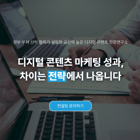 지금보다 효율적인 콘텐츠 마케팅의 전략에 고민이 있으시다면, '더콘텐츠연구소'가 현재 여러분의 상황을 객관적으로 분석 및 진단해 드리고, 막막하고 풀리지 않던 디지털 소통 · 콘텐츠 마케팅의 방향성을 전략적으로 제시해 드리겠습니다.