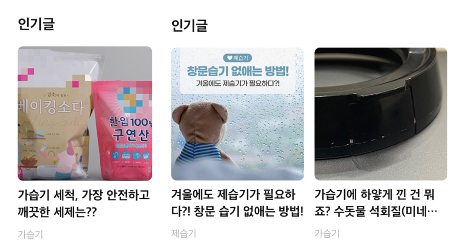 위의 위닉스 사례를 보시면, 위닉스 브랜드 제품이 아닌 다양한 정보를 제공하면서 고객과 신뢰도를 쌓고 있는 브랜드 블로그 사례라고 볼 수 있어요.