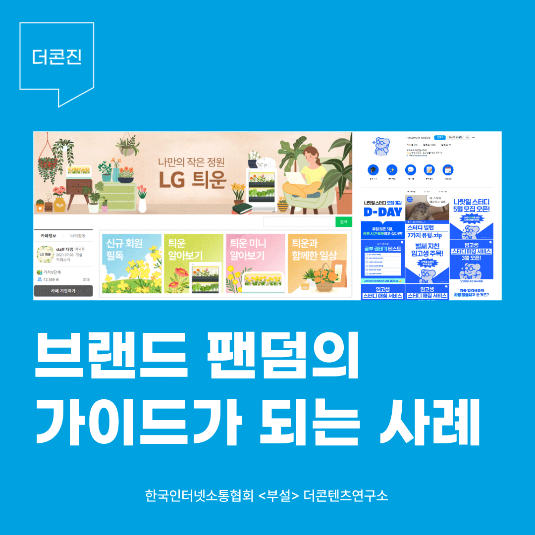 국내에서도 브랜드 팬덤을 키워가고 있는 사례가 많습니다. 그중 LG 틔운의 경우 'LG틔운 카페'의 활동이 서포터즈의 공간에서 팬덤의 공간으로 발전하고 있어 주목되는 사례입니다.