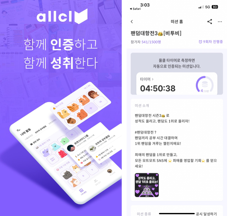 최근 올클 앱에서는 <팬덤대항전>이라는 콘텐츠로 특정 팬덤의 사용자들의 공부 시간(타이머)을 가장 많이 채우면, 최애를 모트모트 SNS에 영업할 기회를 얻을 수 있다는 팬심을 자극하며 타 팬덤(아이돌, 만화 등)을 모트모트 팬덤으로 이끌고 있는 모습입니다.