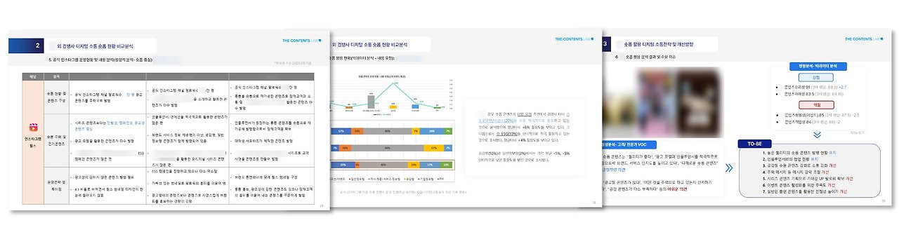 브랜드 숏폼 콘텐츠의 경쟁력 강화를 위해 더콘텐츠연구소가 브랜드만의 차별화되고 경쟁력 높은 숏폼 방향성을 제시해 드리겠습니다. 더콘텐츠연구소는 브랜드의 숏폼 경쟁력 강화를 위한 경쟁사 숏폼 빅데이터 분석, 고객만족도 조사, 전문가 VOC 그리고 브랜드 현 상황 진단, 앞으로의 방향까지 체계적인 방법론으로 제시해드리고 있습니다.