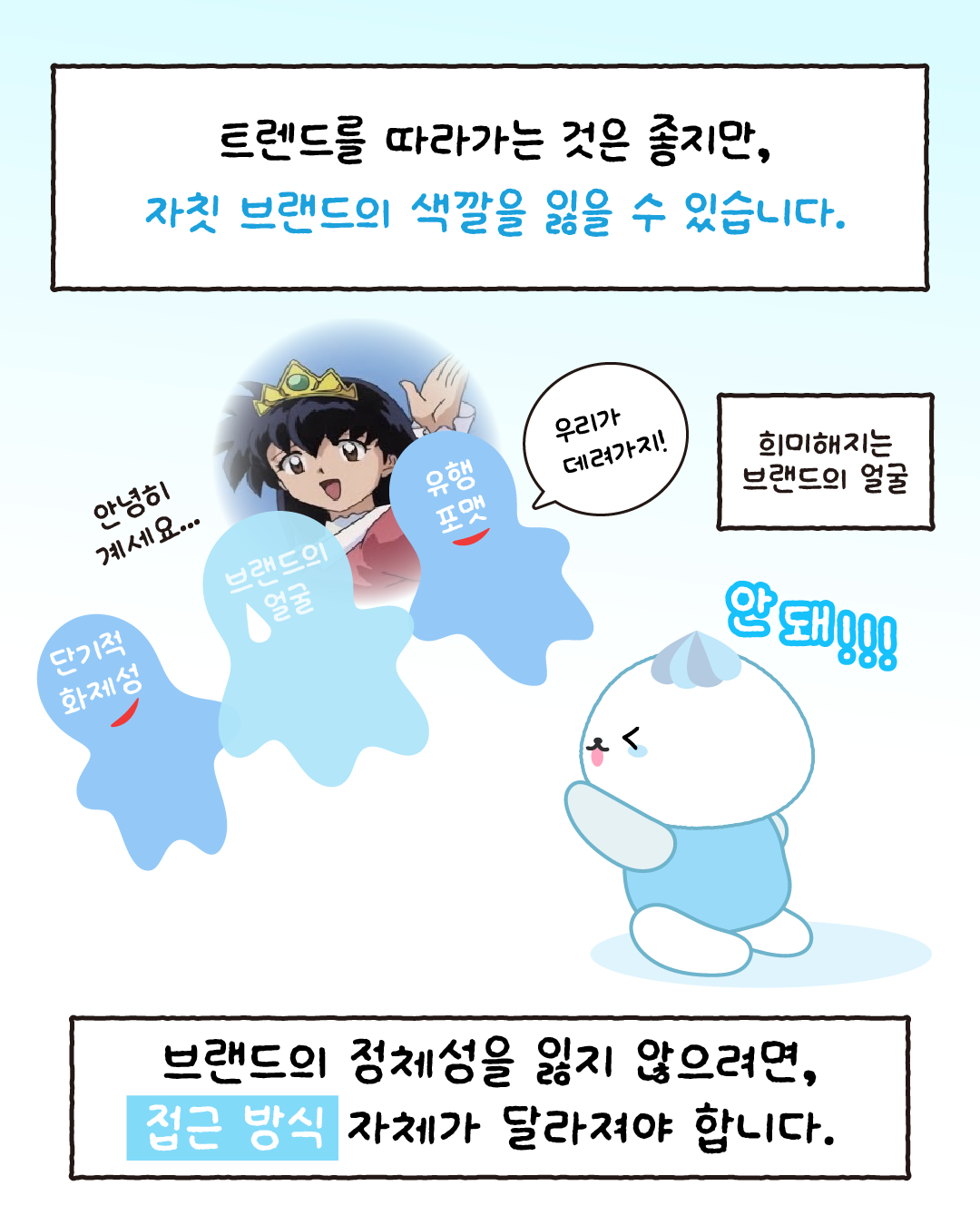 너무 많은 브랜드가 깊은 고민 없이 요즘 유행하는 형식, 지금 잘 되는 포맷, 단기적인 반응을 위한 트렌드에