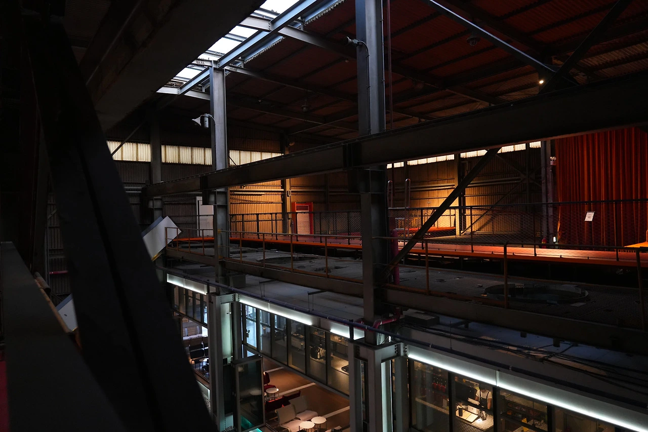 호이스트 홀 천장에는 공장 시절 원료와 설비를 올리고 내리던 크레인이 있다. 지금 그 크레인은 샹들리에를 달고 있다. 샹들리에 아래의 소파와 넓게 뚫린 창을 보면 개방적이고 안락한 공간이다. 하지만 그 위에는 공장의 흔적이 남아있다. 코스모40에서 흔적은 이런 방식으로 존재한다. 지워지거나 대체되는 것이 아니라, 새로운 용도를 입고, 그 자리에 남아있다.