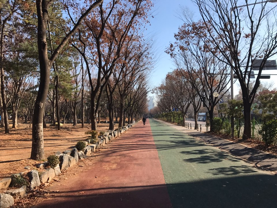 공원은 도심 한복판에 있었다. 주변은 아파트 단지로 둘러싸였고, 오고 가는 버스들이 꽤 많았다. 한껏 꾸며 약속 장소로 향하는 사람들과 운동복 차림의 사람들이 섞여 있었다. 꾀죄죄한 모습이 조금 창피해 얼른 모퉁이를 돌았다. 모퉁이를 돌았을 뿐인데 사람도, 차도 적어졌다. 운동을 하는 동안 이곳도, 나도 변하게 될 것이다. 공원은 계절에 따라, 나는 노력에 따라. 나는 변화될 내 모습보다 공원의 모습이 더 기대가 되었다. 아마 그래서 나는 꽤 열심히 운동을 하게 되지 않을까.