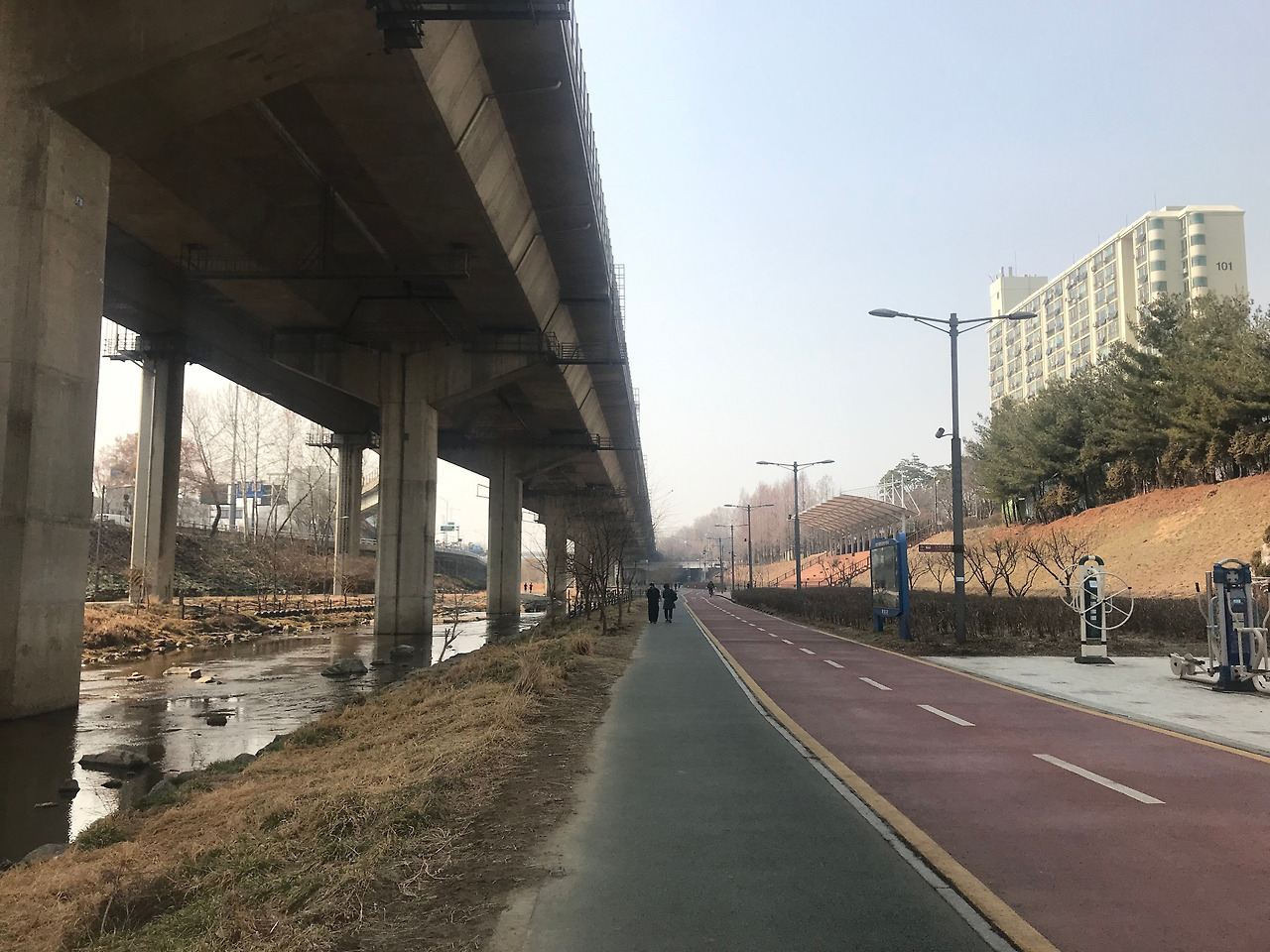나와 J의 러닝 코스로 산책로와 자전거 전용도로가 있어 러너와 라이더가 공존하는 공간이다. 간단한 체육시설이 있어 남녀노소가 즐길 수 있는 곳이다. 뛰다 보면 갈림길이 나오는데 왼쪽으로 가면 망원 한강공원, 오른쪽으로 가면 난지 한강공원이 있다.