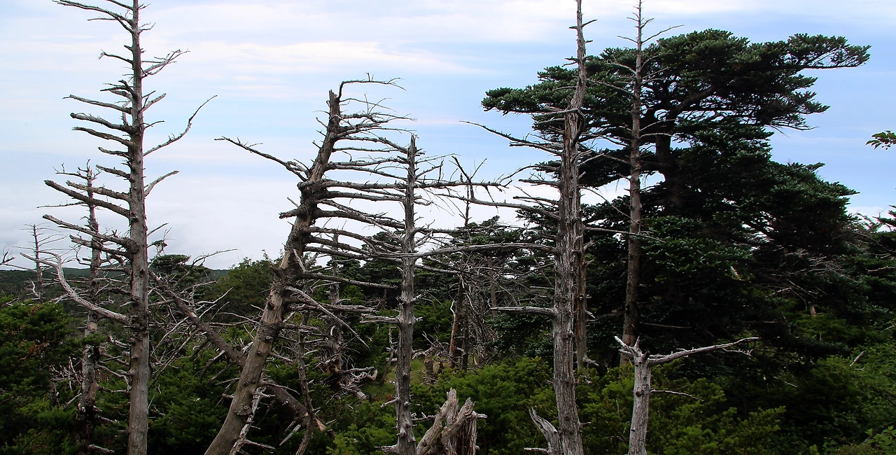등산로 주변 고사목들이 을씨년스러운 분위기를 연출하고 있습니다.