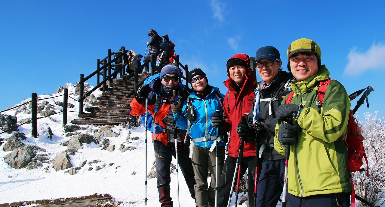 눈이 쌓인 겨울 산에서는 특히 안전에 유의해야 한다.