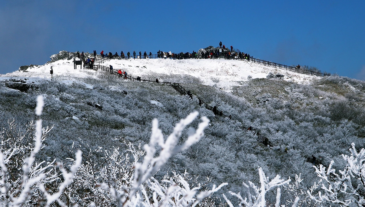 겨울 산의 진수를 보여주는 향적봉 정상 부근.