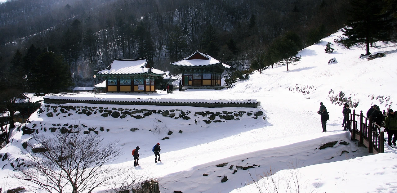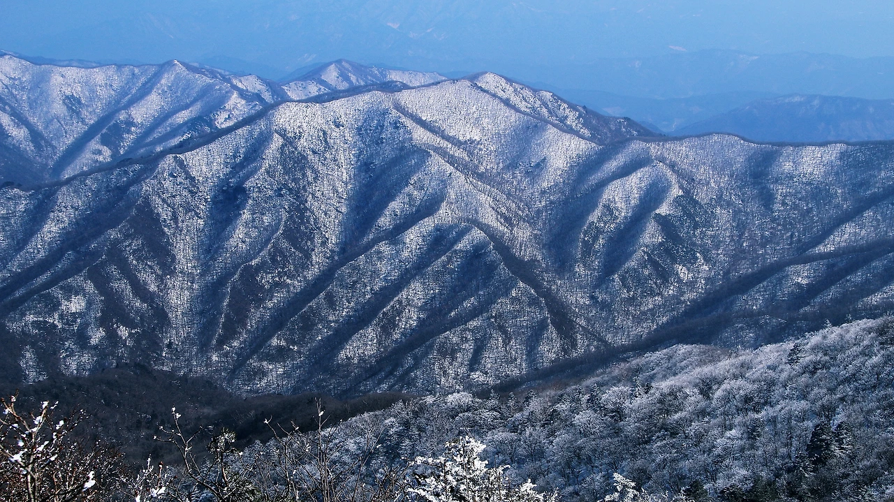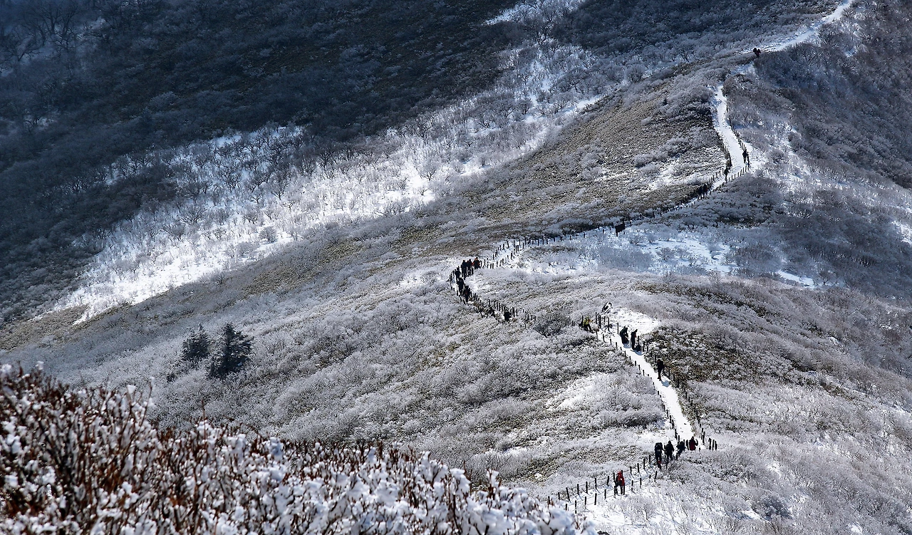 겨울의 덕유산은 마치 히말라야의 고봉들을 연상케 한다. 첩첩산중으로 장쾌하게 이어진 크고 작은 연봉들이 눈가루를 흩날리며 선경을 연출한다. 덕유산은 남부지방에 있으면서도 서해의 습한 대기가 산을 넘으면서 뿌리는 많은 눈 때문에 겨울산행 코스로 최고의 인기를 모으기도 한다.