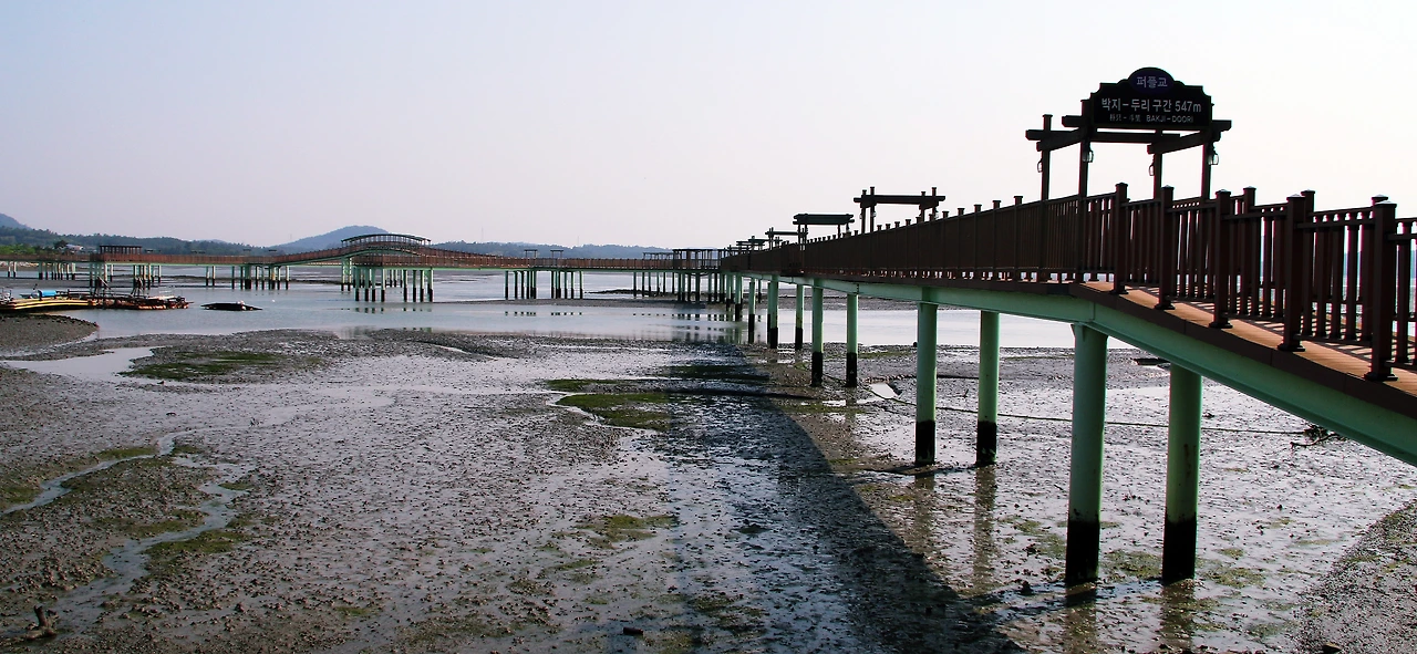 팔금도에서 신안 제1교를 건너면 김환기 화백의 고택이 보존되어 있는 안좌도다. 정갈한 고택을 둘러본 후 반드시 들러야 하는 관광명소가 있다. 섬 속의 섬 박지도와 반월도를 잇는 목교로, 보라색 꽃과 농작물이 풍성해 퍼플교라 명명했다고 한다. 걸어서 육지를 건너는 것이 소망이었던 김매금 할머니의 꿈을 이루기 위해 만들어졌다고 하는 퍼플교를 따라 걷거나 자전거를 타고 박지도와 반월도를 돌아보는 코스가 환상적이다.