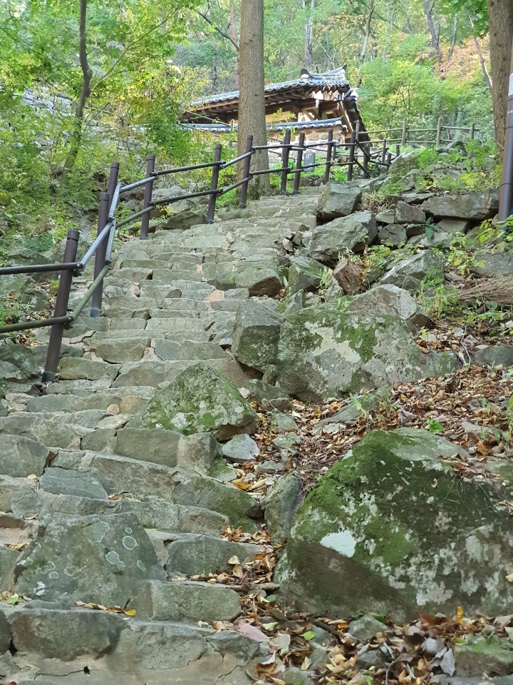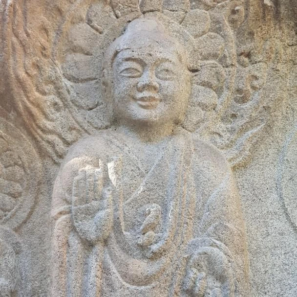 세 분 부처님의 아름다운 미소를 한참 바라보고 내려오는 길에 부처님의 미소를 오랫동안 기억하고 싶어 다시 뒤돌아 봅니다. 돌이켜 보며 내 삶을 이야기할 때 미안함이 없기를 바라면서요.