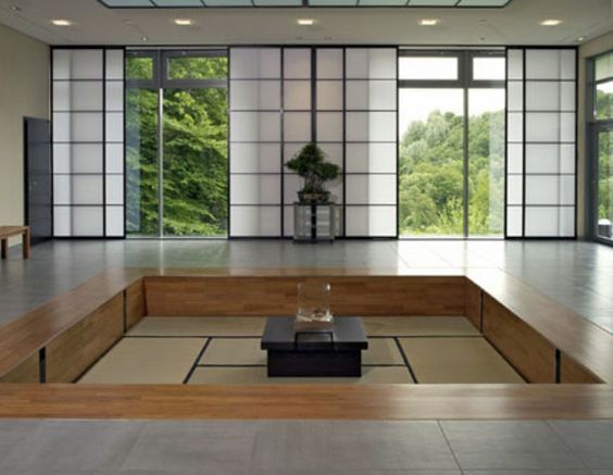 일본에는 위 사진처럼 테이블 공간의 바닥 높이를 낮춰 좌식인듯 입식처럼 앉는 문화가 있다.