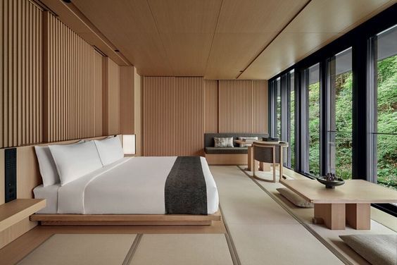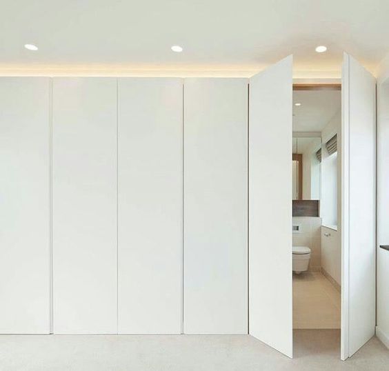 - 드레스룸 : 큰 방에는 작은 욕실이 딸려있으니 세안을 하고 옷을 입고 메이크업하는 것이 논스톱으로 이루어질 수 있다. 따라서 드레스룸은 욕실 쪽으로 배치해 욕실과 드레스룸을 하나의 카테고리로 묶는다. 욕실 도어를 가구 도어와 일치시키면 미니멀 인테리어를 완성시키기에 좋다.