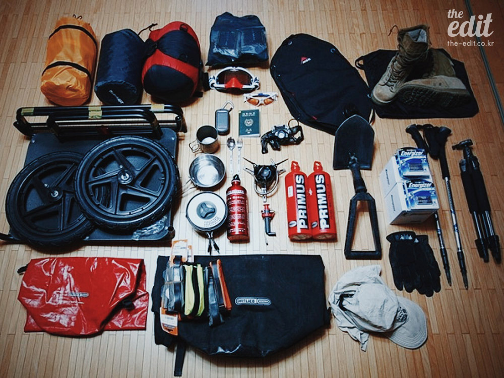 우리는 탐험가의 가방 속이 궁금했다. 세상에서 가장 터프한 여정을 떠나는 사람은 어떤 짐을 챙길까? 장비는 어떤 걸 사용하는지도 궁금했다.