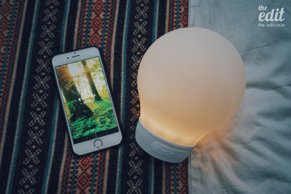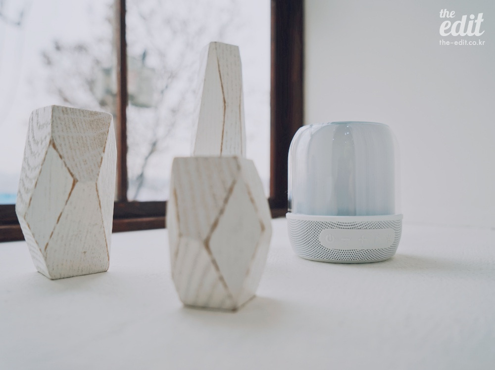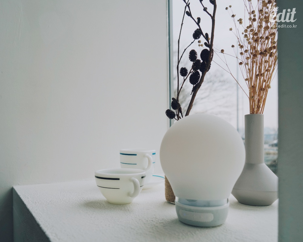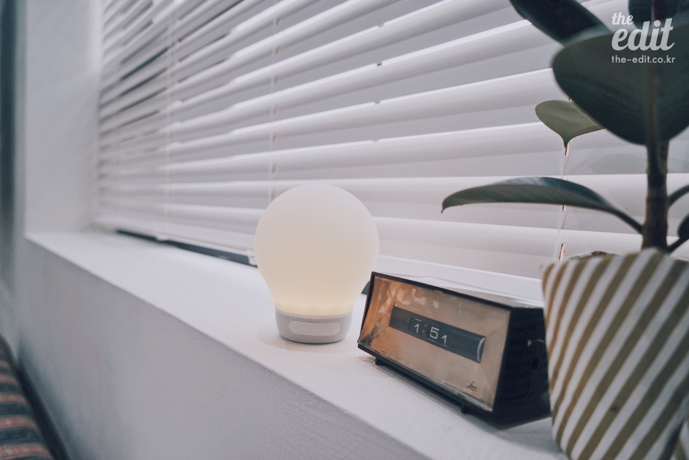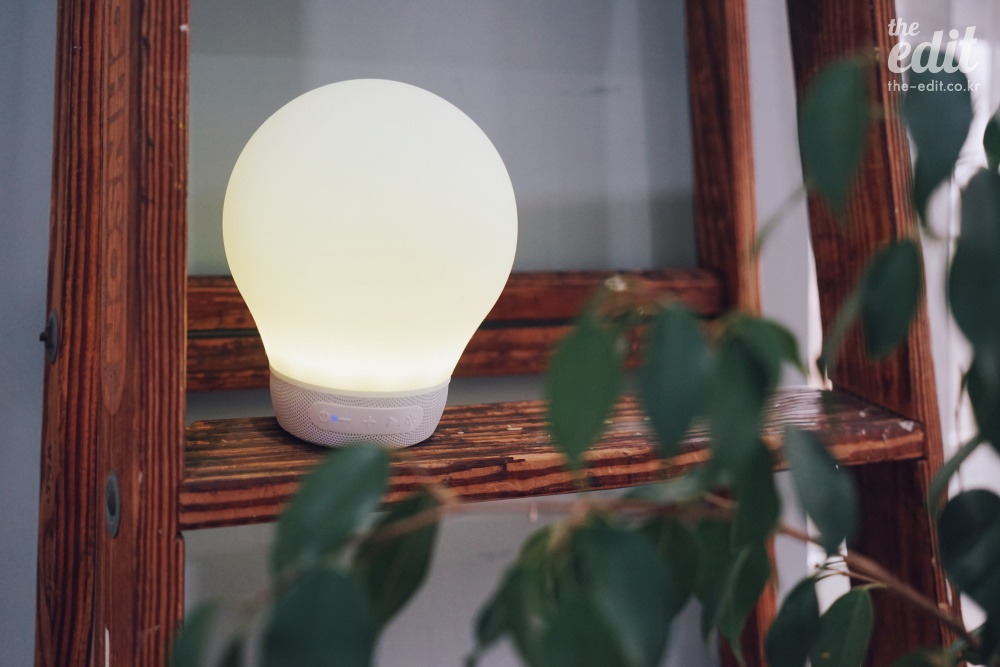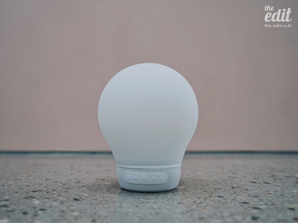 새하얗고 동그스름한 얼굴, 블루투스 스피커라고는 믿을 수 없는 외모다. 귀여운 전구를 닮은 너. 실리콘 재질의 머리는 보들보들 말랑말랑. 자꾸 만지고 싶어진다.