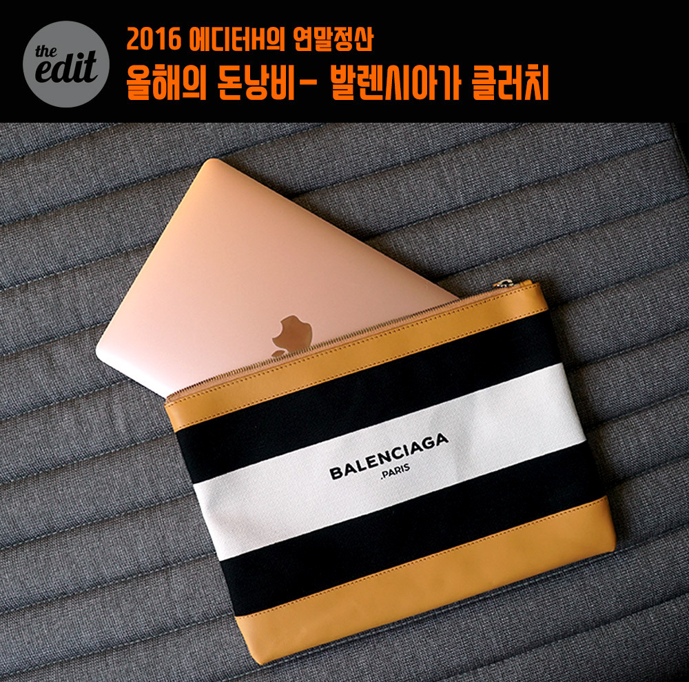 올 여름엔 맥북을 샀다. 2016년형 로즈골드 맥북. 이 어여쁜 물건을 사고보니 어울리는 슬리브를 사야겠다는 생각이 휘몰아쳤다. 평범한 12인치 노트북용 파우치나 슬리브를 샀으면 참 좋았을텐데, 난 발작처럼 발렌시아가 클러치를 샀다. 해외 구매대행까지 하는 극성을 부려가며 이게 12인치 맥북 사이즈에 딱 맞는다는 헛소리를 하면서. 패브릭과 가죽 소재를 믹스해 만든 클러치는 충격 완화에는 젬병이었고, 금속 지퍼는 맥북 표면을 ‘직직-‘ 긁어댔다. 결국 딱 한 번 쓰고 다신 쳐다보지도 않았다. 가격은 창피하니까 비밀이다.
