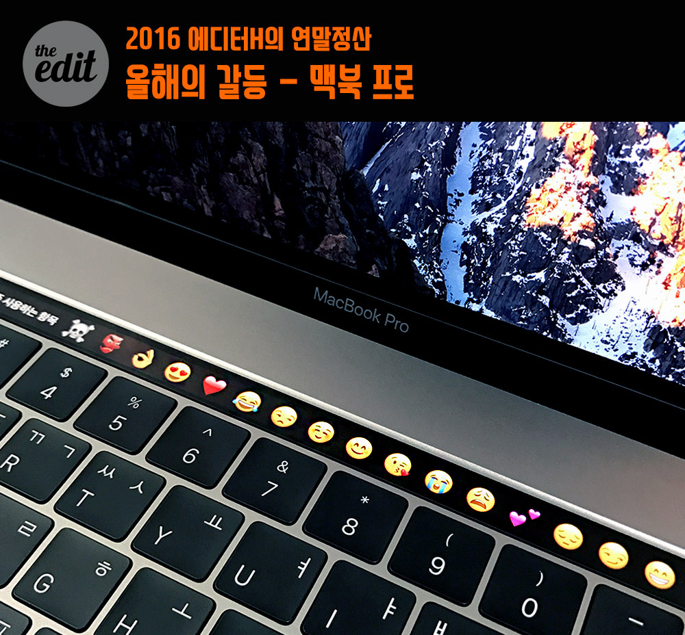 최근의 나는 책상에 두 대의 맥북을 올려놓고 작업하는 호사를 누리고 있다. 하나는 본래 쓰는 12인치 맥북이고, 하나는 따끈따끈한 13인치 맥북 프로 터치바 모델이다. 리뷰를 위해 새로운 맥북 프로를 쓰다 보니 삶의 질이 올라가는 느낌이다. 영상 작업은 4K도 거뜬하게 돌아가고, 시시각각 변하는 터치바는 쓸수록 궁금하다. 너에 대해 더 알고 싶어져, 더 만져보고 싶고. 이건 어쩌면 사랑인 걸까. 과감하게 기존 맥북을 버리고 맥북 프로로 갈아탈까 고민하지만, 외출할 땐 생각이 또 달라진다. 깃털처럼 가벼운 맥북에 비하면 맥북 프로는 아무리 가벼워져도 부담스럽다. 둘 다 사랑할 수 없을까. 양다리 걸치기엔 내 지갑 사정이 빈곤하구나.