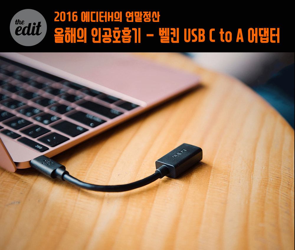 맥북 얘기가 나온 김에 이어서 가보자. 12인치 맥북엔 단 한 개의 구멍만이 있다. 작고 귀여운 USB Type-C 포트 말이다. 덕분에 나는 매일 같이 멘붕에 빠졌다. 충전기도 빌릴 수 없었고, 라이트닝 케이블도 연결할 수 없었으며, SD카드 리더도 꽂을 수 없었다. 위기의 순간에 날 구해준 건 14cm 길이의 짧은 케이블 어댑터. 벨킨의 Type-C to Type-A 어댑터다. 언제 어디서든 네가 있으면 안심이다. 이게 없으면 숨 쉴 수 없어. Type-C에 고통받는 사람들을 위한 만능키.