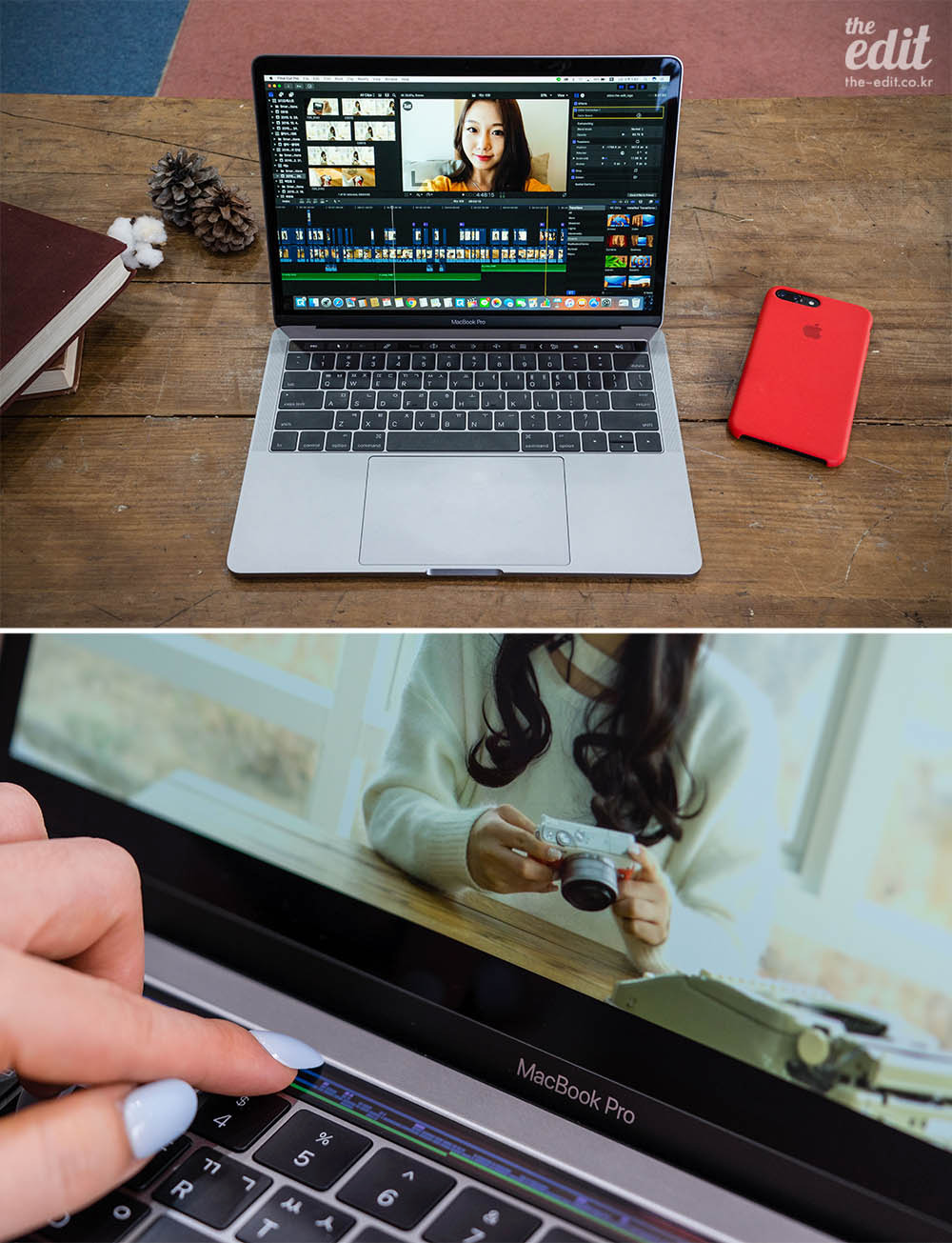 가장 좋은 건 파이널 컷 프로 X와의 소름끼치는 궁합이다. 이거 하나로도 터치바의 존재 이유가 충분해 보인다. 전체화면으로 영상을 보며 편집본 전체 타임라인을 훑어볼 수 있으며, 커서를 살짝 움직여 터치바를 터치하는 동작 만으로 컷 분할과 다듬기가 가능하다.