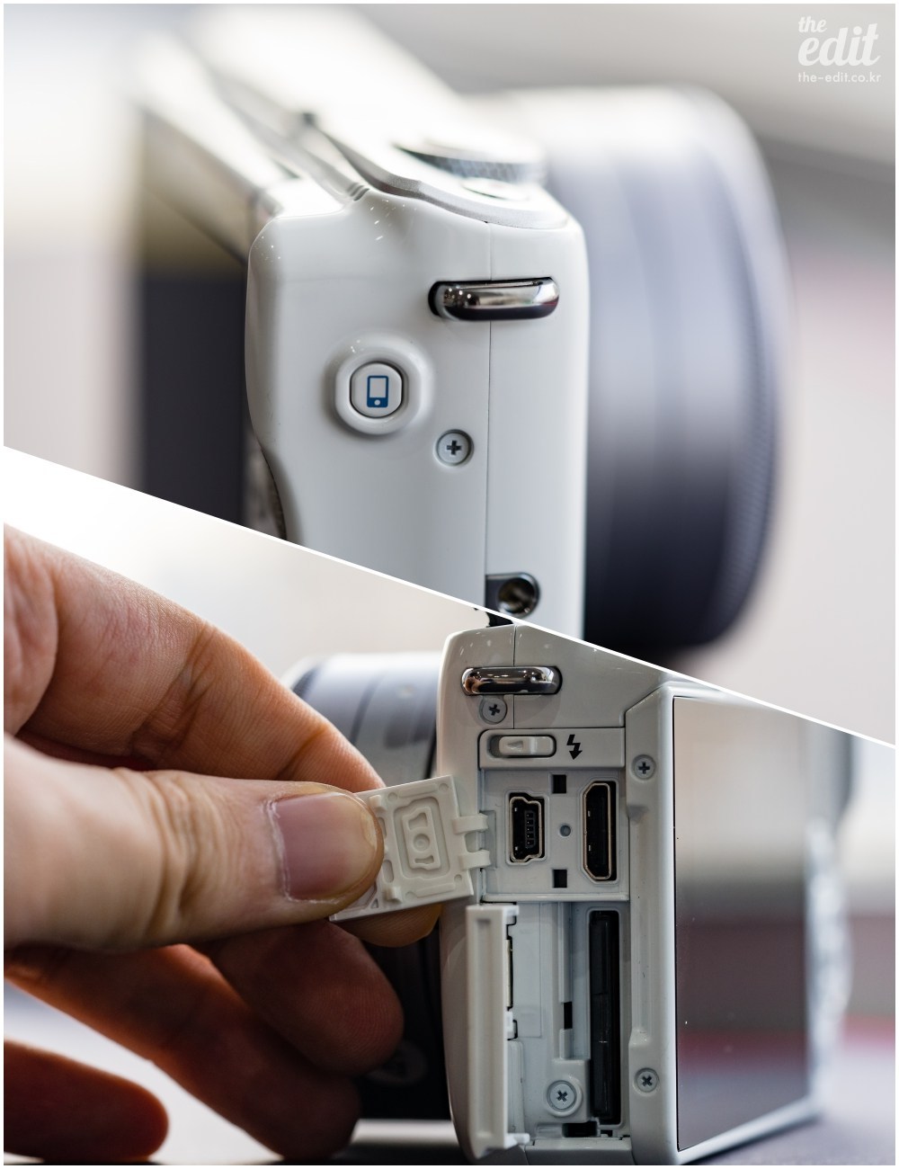 카메라 우측에는 SD 카드 슬롯과 미니 HDMI 포트가 보인다.