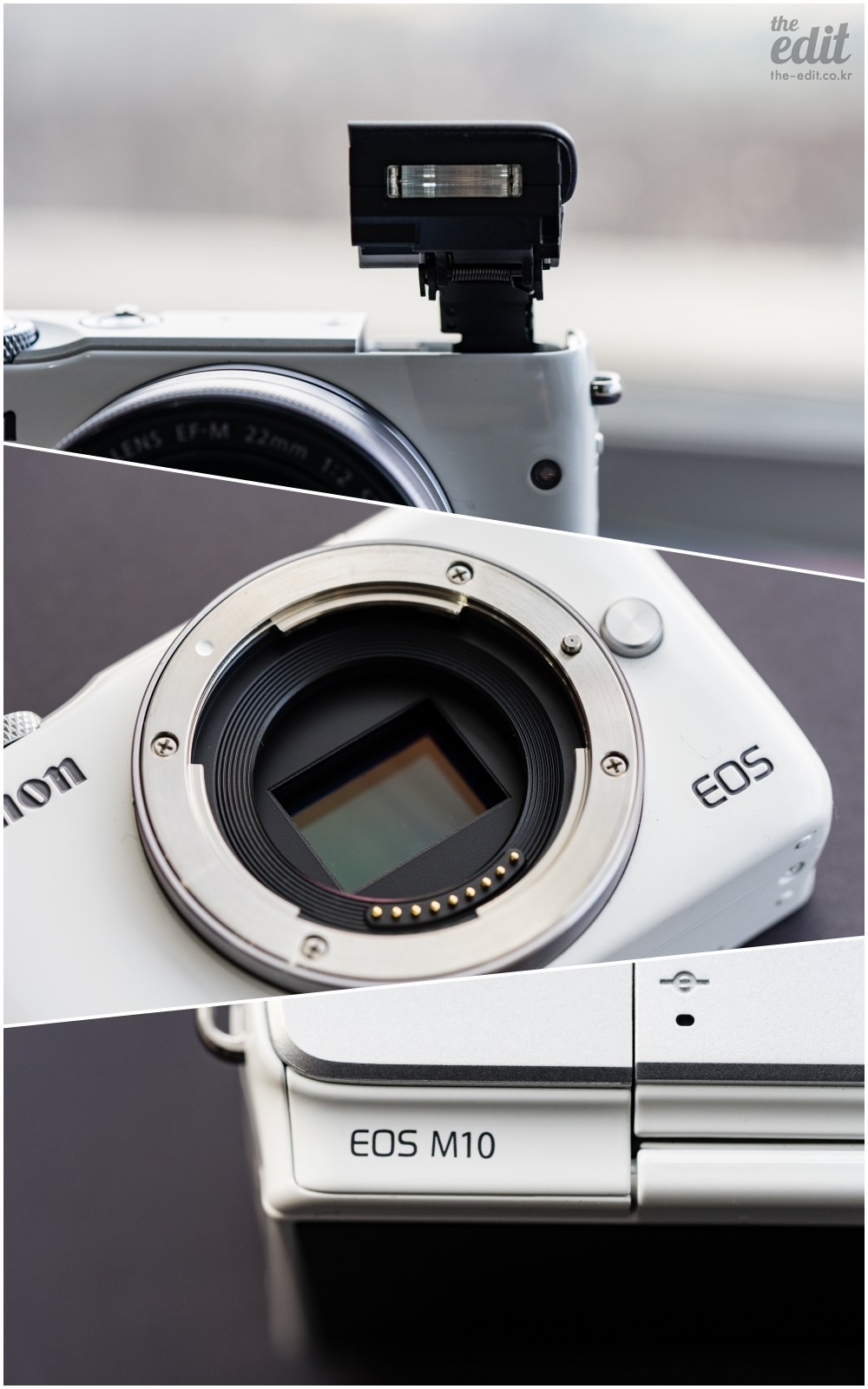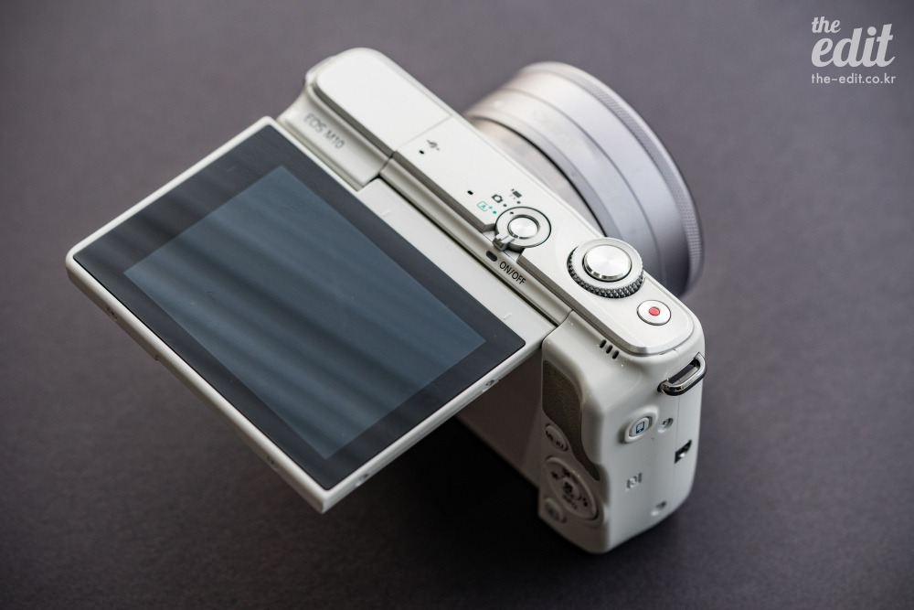 캐논 EOS M10의 꽃은 바로 이 페이스 커버다. 잘 뽑아낸 다섯 가지 컬러의 페이스 커버는 뭐 하나 빠지는 것 없이 카메라 바디와 궁합이 좋다. 카메라는 매끈한데 페이스 커버 자체에 굴곡이 있어서 커버를 씌워야 손에 더 착 감긴다. 예쁜대다 그립도 살리고, 제품도 보호해주는 용도다.