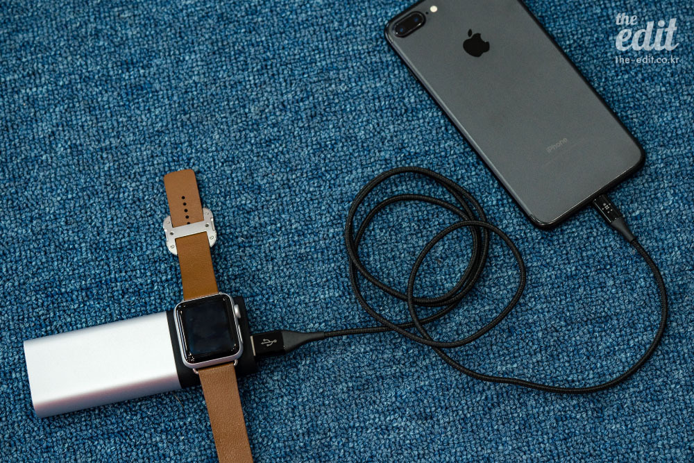 기본적으로는 일반 외장 배터리와 똑같기 때문에 케이블을 연결하면 스마트폰 같은 다른 기기도 충전할 수 있다. 애플워치와 아이폰을 동시에 연결하고 충전을 걸어두니, 충전충 에디터H의 마음이 흐뭇하다. 평소에도 외장 배터리 하나 정도는 들고 다니는데, 이 제품만 있으면 아이폰과 애플워치를 한 번에 해치울 수 있겠다. 갑작스럽게 집에 들어가기 싫은 날에도 마음 편한(?) 외박을 즐길 수 있겠구나. 룰루.