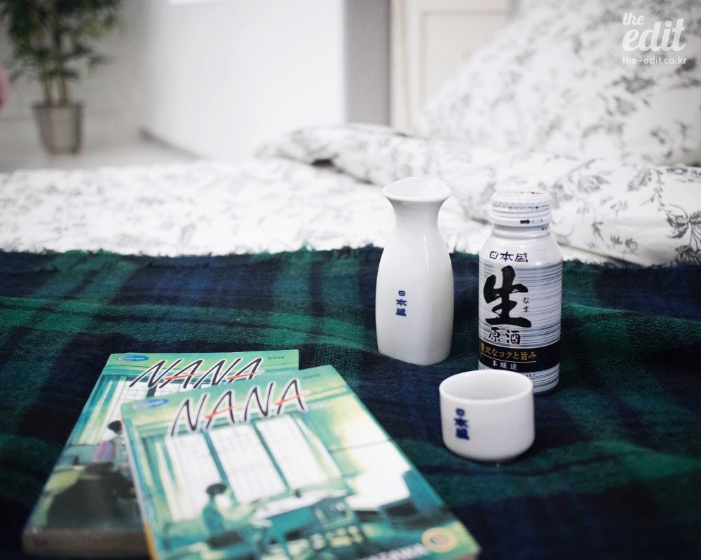 이제 본격적으로 마셔볼까. 이불 밖은 넘나 위험한 것. 요즘처럼 추운 날엔 전기장판을 틀고, 뒹굴뒹굴 만화책이나 보는 게 최고다. 차갑게, 상온에서, 또는 뜨끈하게. 사케는 제품마다 가장 맛있게 즐길 수 있는 온도가 정해져 있다. 19.5도로 도수가 높은 흰캔은 상온이나 차갑게 마셔도 좋지만, 뜨끈하게 데워서 마시는 것을 추천한다. 캔이라 데우는 것도 쉽다. 냄비에 물을 끓이고, 캔을 물 안에 넣으면 쉽게 중탕할 수 있다. 데운 캔은 도쿠리에 잘 따른다. 사기잔인 쵸코도 준비한다.