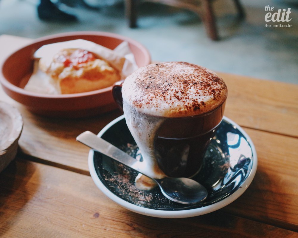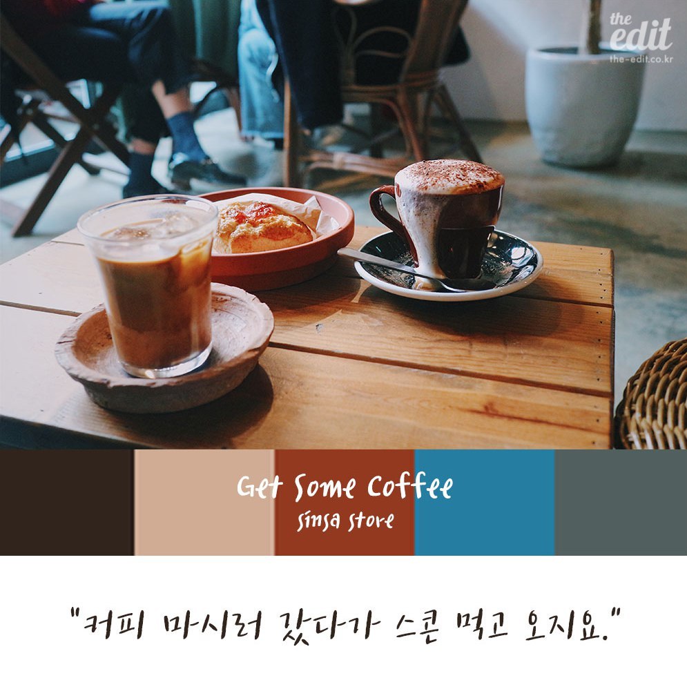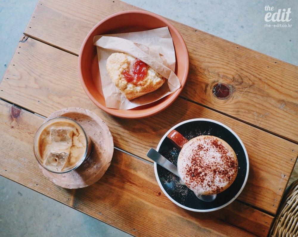 겟썸 커피 신사 스토어가 특별한 이유는 바로 요 맛있는 스콘 덕분이다. 투박하지만 꽉 찬 맛이다. 매장 한켠에서 민트색 키친에이드 반죽기로 반죽하고, 스콘을 굽는 모습을 보면 도저히 그냥 지나치기 힘들걸. 내게 아주 먼 유럽 사는 친척 할머니가 있다면, 그리고 그 할머니가 사랑을 듬뿍 담아 스콘을 구워 주신다면 이런 맛일까. 투박한데 꽉찬 맛이다.
