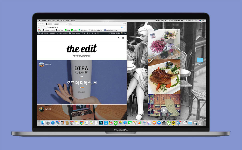 하단에 커서를 대면 숨겨졌던 메뉴가 나타나는데, 맥북 프로의 터치바와 호환되어 터치바에도 하단 메뉴가 표시된다. 넘나 신나는 것.