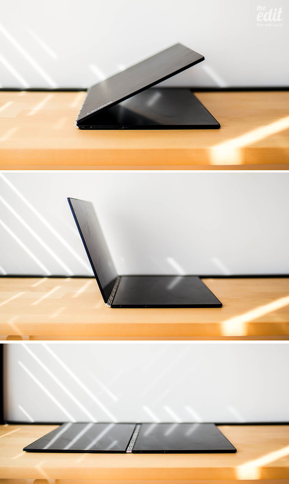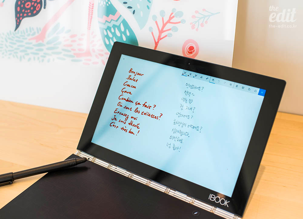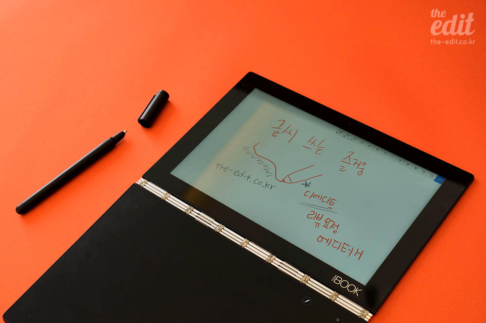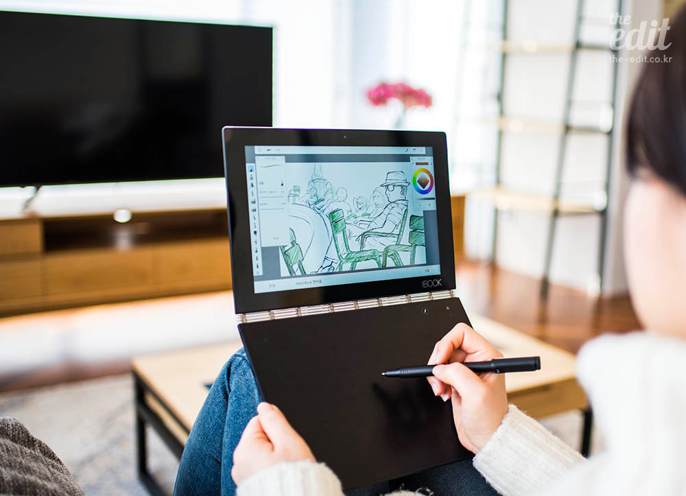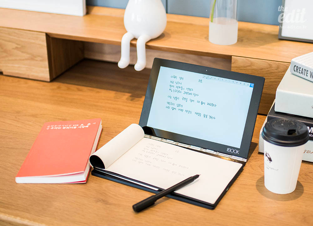 요가북은 독특하다. 여태까지 사용해본 제품들과는 사뭇 다르다. 기존 노트북을 갈아엎은 제품이지만 아이러니하게도 ‘노트북’이라는 단어에 가장 어울리는 제품이기도 하다. 컴퓨터인 동시에 글자를 쓸 수 있는 종이책과 같은 역할을 하니까. 뻔한 표현이지만 디지털과 아날로그를 절묘하게 결합해놨다. 디지털의 편리함과 아날로그의 감성에서 취하고 싶은 것만 취한 형태다. 조금 더 자세히 얘기해보자.