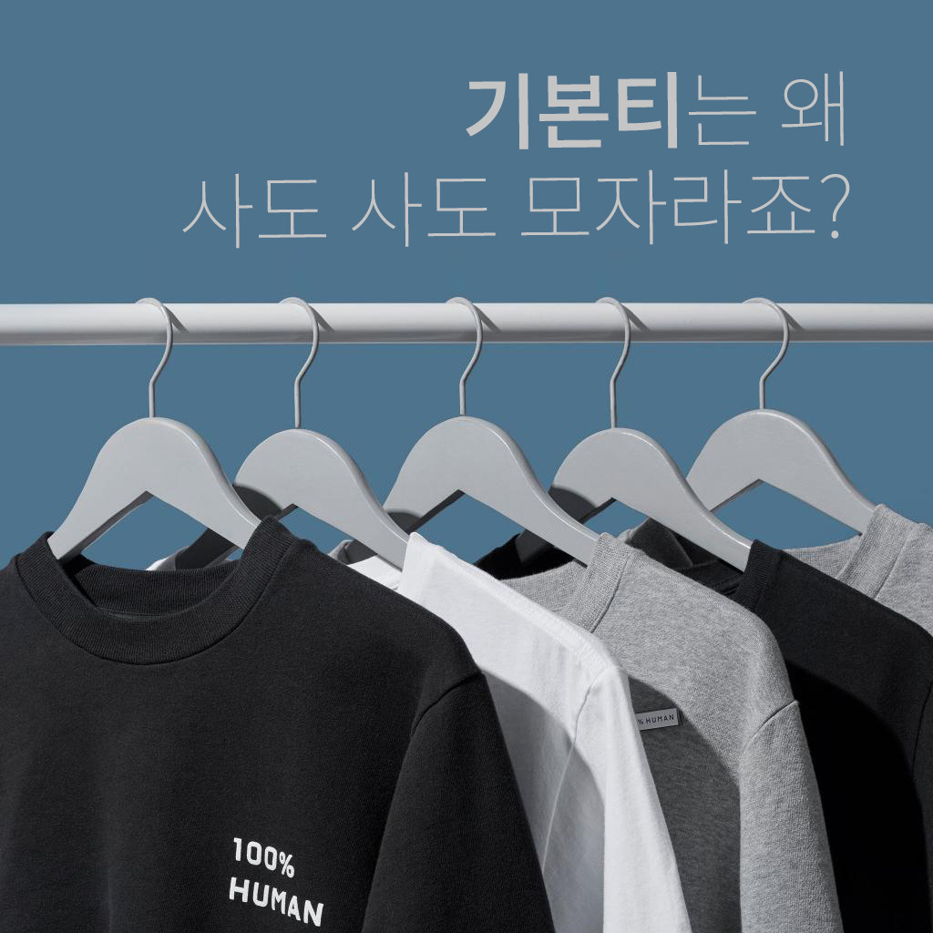 ‘합리적인 가격에 질 좋은 기본템을 찾았다.’ 아, 완벽하다. 너무 완벽해서 불가능한 유니콘 같아 보일 정도로. 가격이 싸면 질이 쓰레기고, 질이 좋다 싶으면 가격이 무섭다. 내가 그렇게 큰걸 원하는 건가? 내 이십 년 쇼핑경력으로 속단하자면 마음에 쏙 드는 기본템을 찾는 건 운명의 짝을 찾는 것처럼 어려운 일이더라. 그러니까 마음에 쏙 드는 옷을 찾으면 그 옷에 구멍이 날 때까지 입고, 혹시 단종될까 깔별로 몇 개씩이나 쟁여둔다.